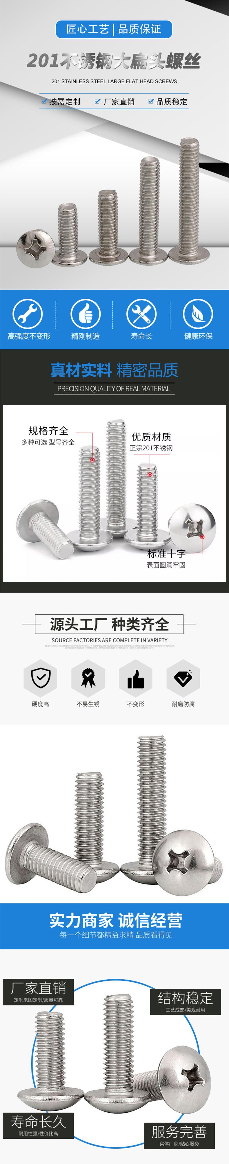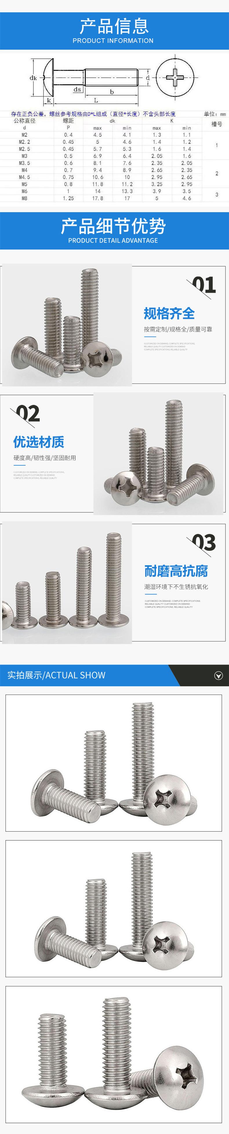 Acero Inoxidable 201 Tornillo de Máquina de Cabeza Plana Grande Tornillo de Cabeza de Hongo Empotrado en Cruz Sujetador al por Mayor M3M4M5M6M8