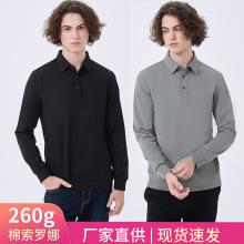 Polo de manga larga de alta gama de 260 g Solona antibacteriano algodón de Xinjiang cuello de camisa para hombre polo sin costuras engrosado sin planchado para hombre