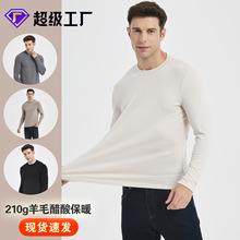 Ropa interior térmica de lana de alta gama, acetato, seda de morera, para hombre, cuello redondo, otoño e invierno, color sólido, acrílico, para exterior, camiseta base para hombre