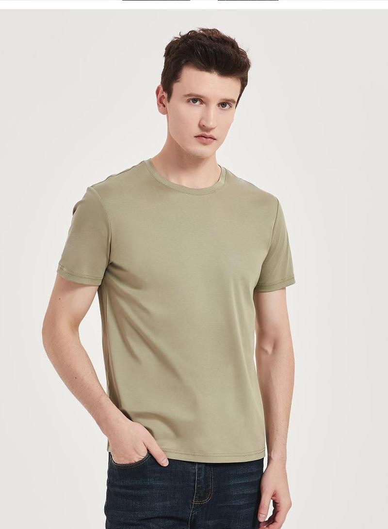 Camiseta de Manga Corta Cálida Zhen De Rong Yifeisi para Hombre Cuello Redondo Algodón de Fibra Larga Acrílico 5A Antibacteriana Camiseta Cálida de Invierno para Hombre