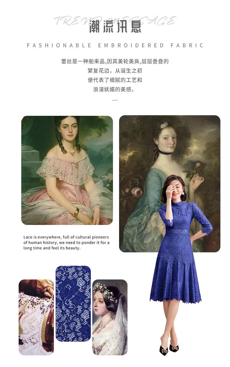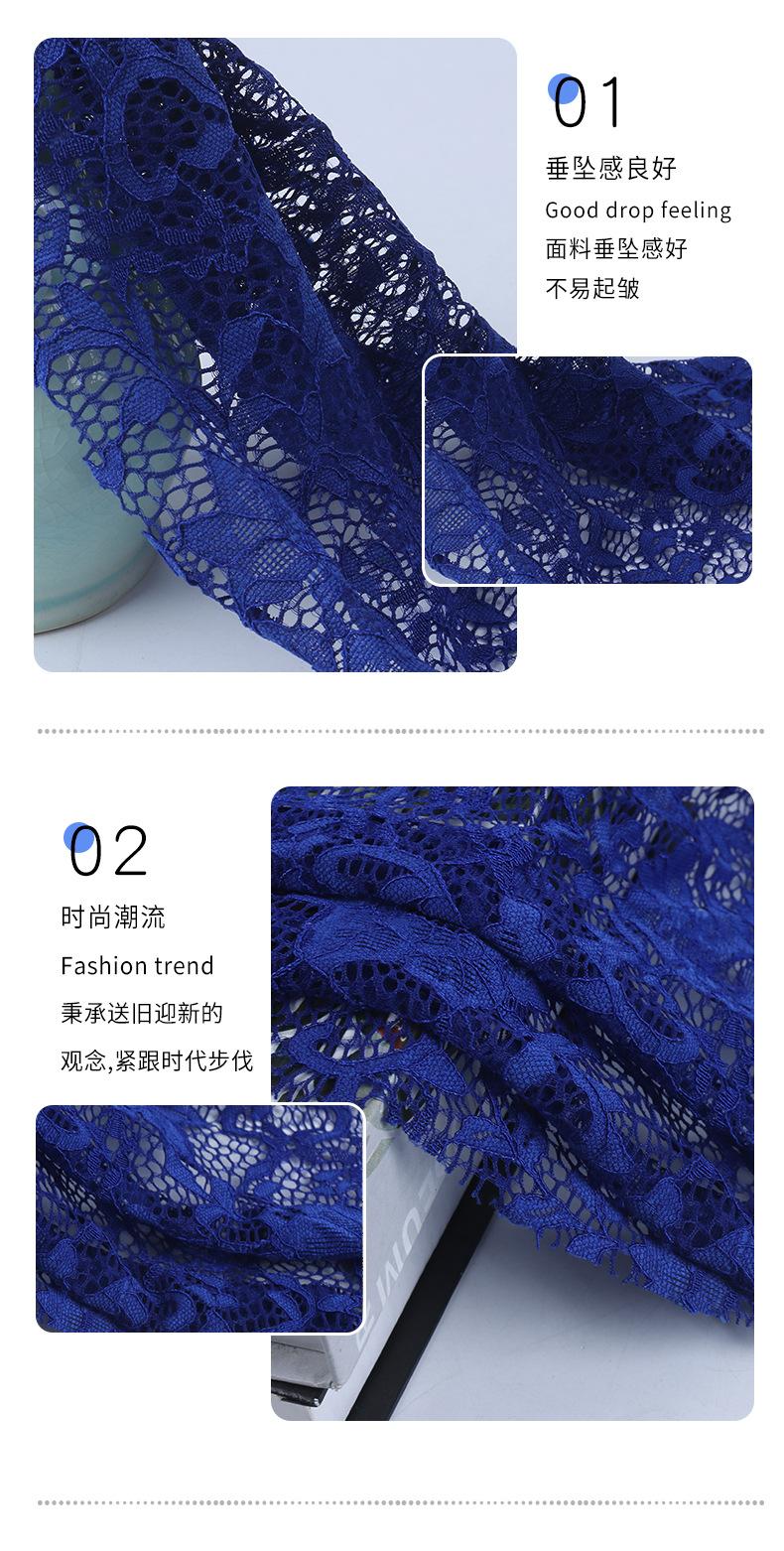 Hilo Elástico Tela de Encaje para Mujer Dignificada Tela de Encaje Gris Oscuro Vestido de Encaje Azul Marino en Stock