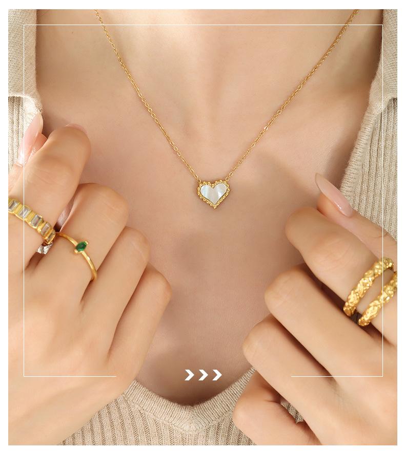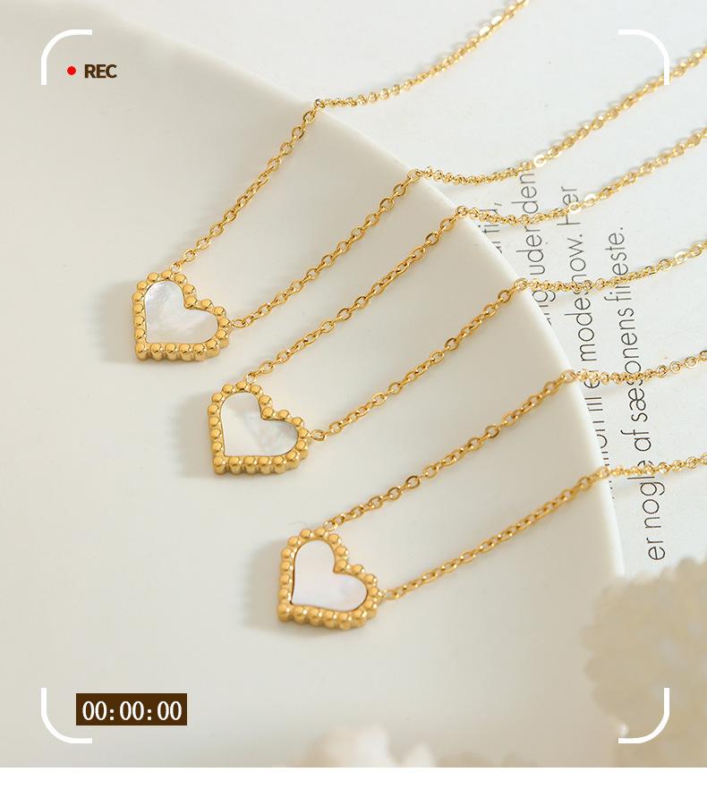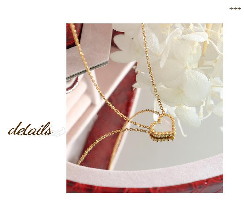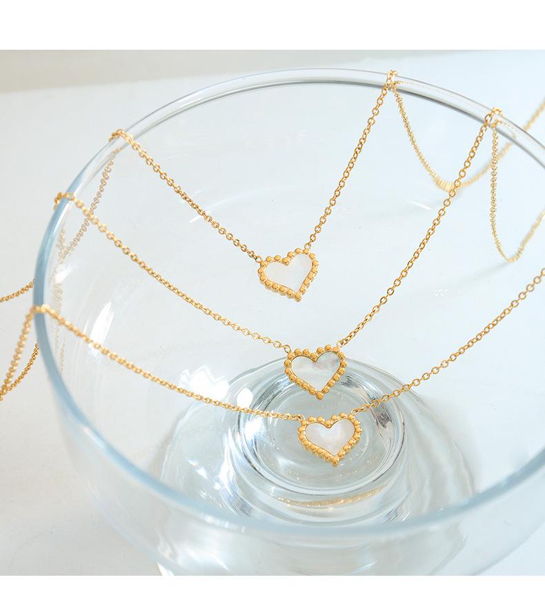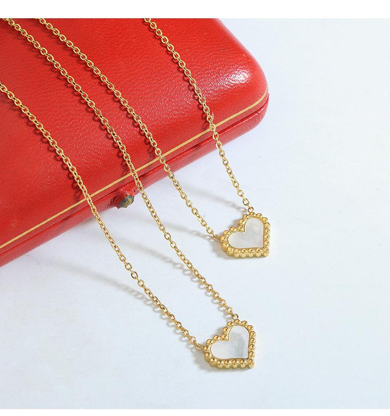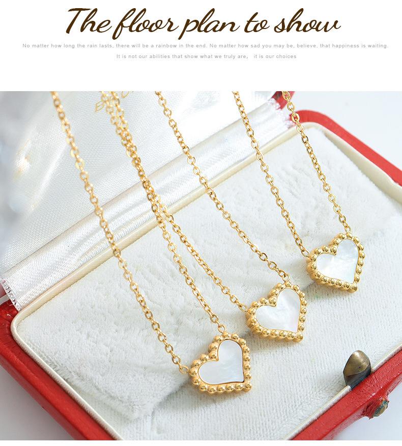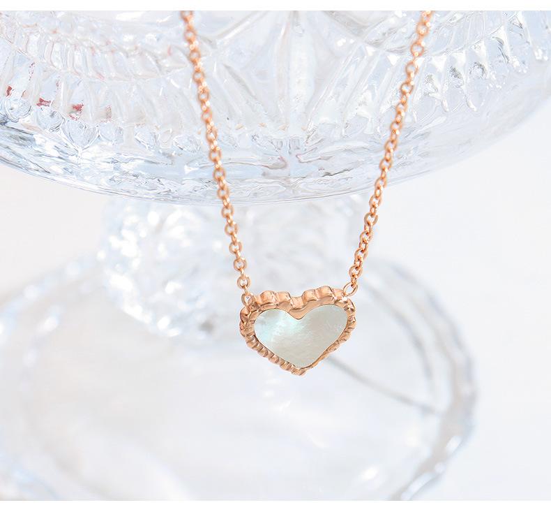 Collar de concha de mar blanca con forma de corazón de melocotón, cadena de clavícula, material de acero de titanio para niñas, de Japón y Corea del Sur, con pequeñas cuentas frescas, una generación de cabello.