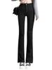 Pantalones vaqueros finos de verano 2024 para mujer, ajustados, elásticos, de cintura alta y color negro, con diseño de herradura