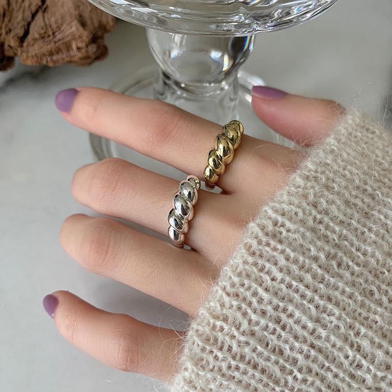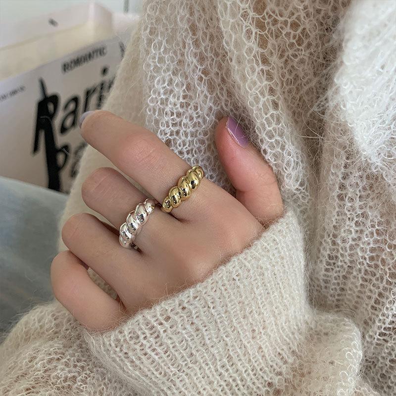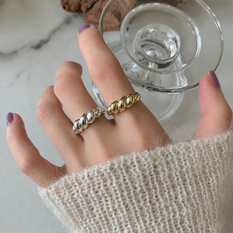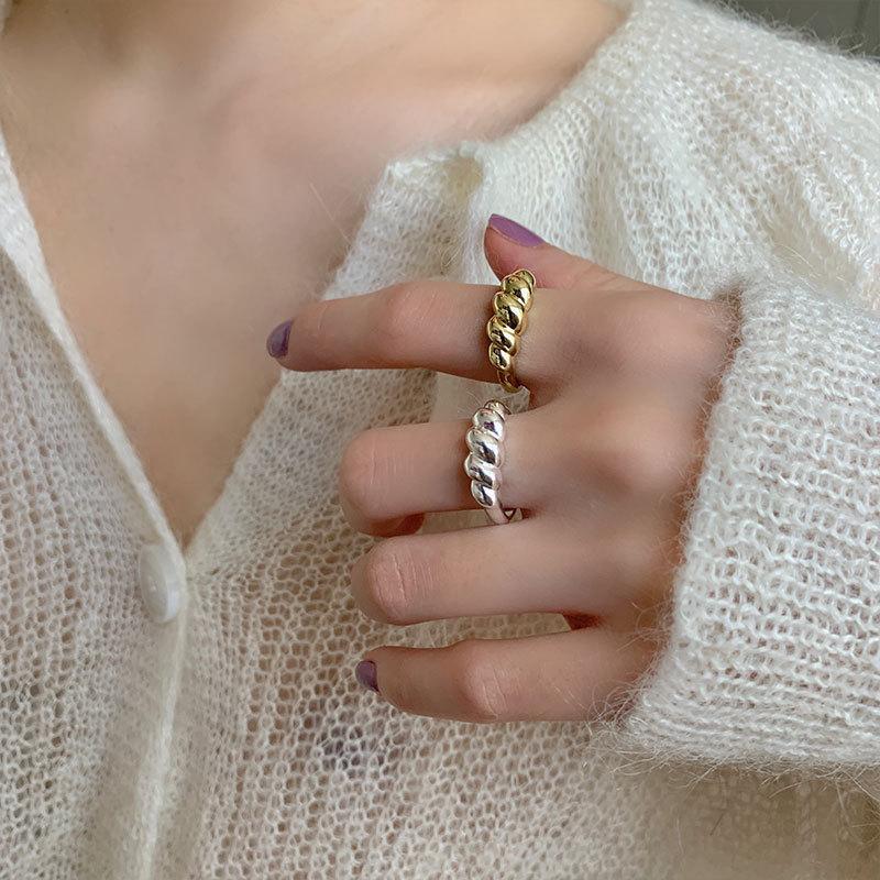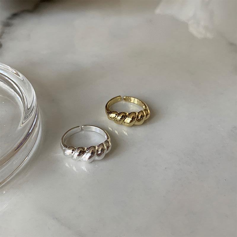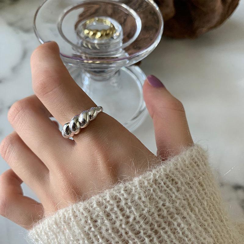 Anillo de Bolso de Cuerno Distintivo de Plata S925 Estilo Coreano para Mujer Moda Retro Elegante Espiral Abierto Anillo de Dedo Hip-Hop