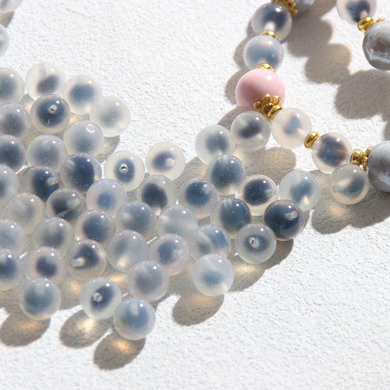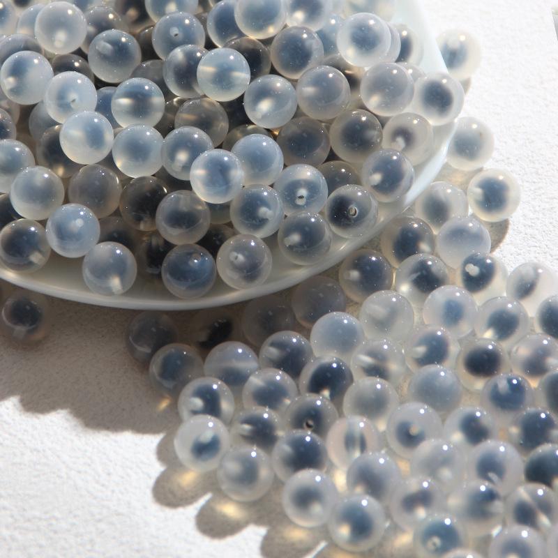 Cuentas sueltas de ágata con forma de corazón de azúcar natural, cuentas redondas, joyería de cristal para bricolaje, pulsera de medio estanque azul neblina negra, accesorios al por mayor