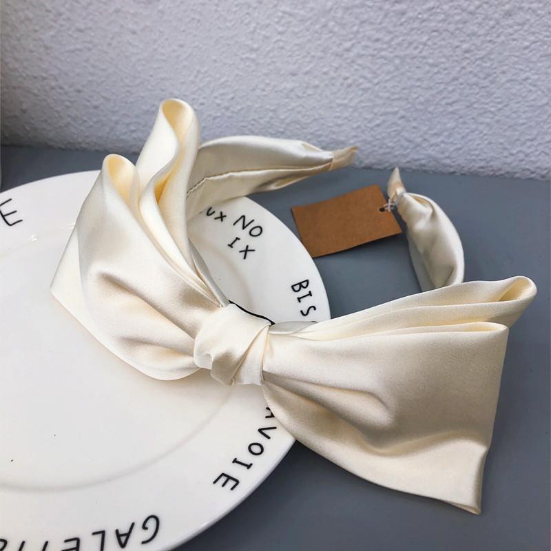 Nueva banda para el cabello de satén de alta gama de Corea con lazo en la parte superior craneal para mostrar el rostro, pequeña banda para el cabello que se lava el rostro, accesorios para el cabello rojos de Internet