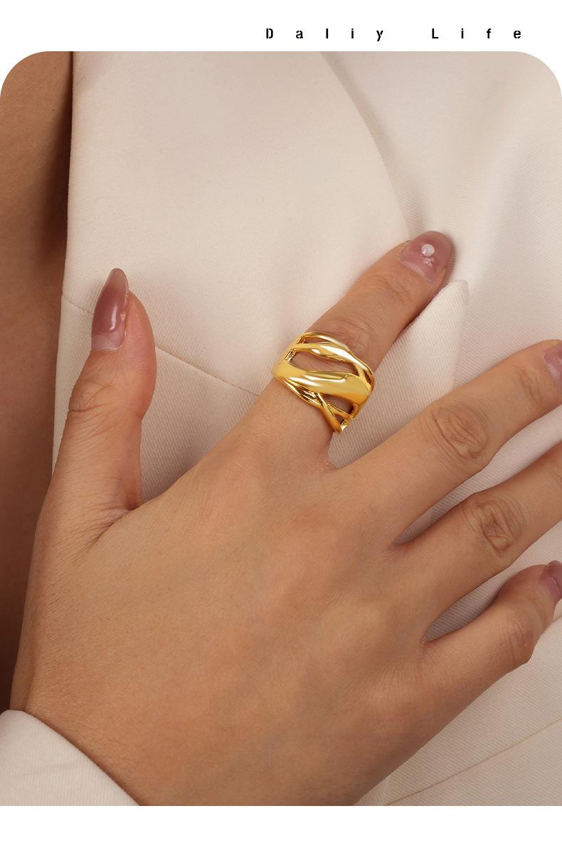 Anillo de dedo dietético abierto ajustable de personalidad de moda ins trendy que combina con todo anillo brillante anillo cruzado de grosor multicapa