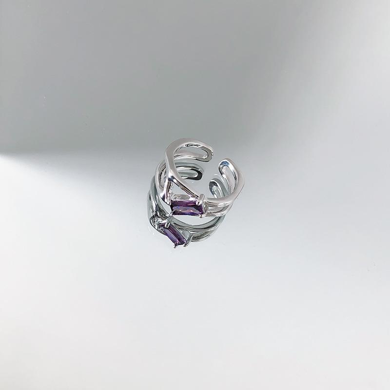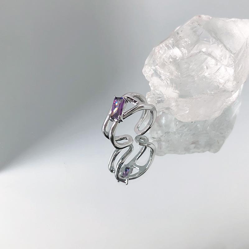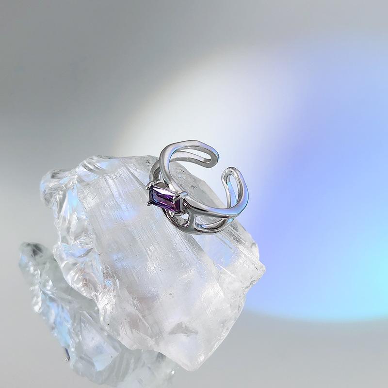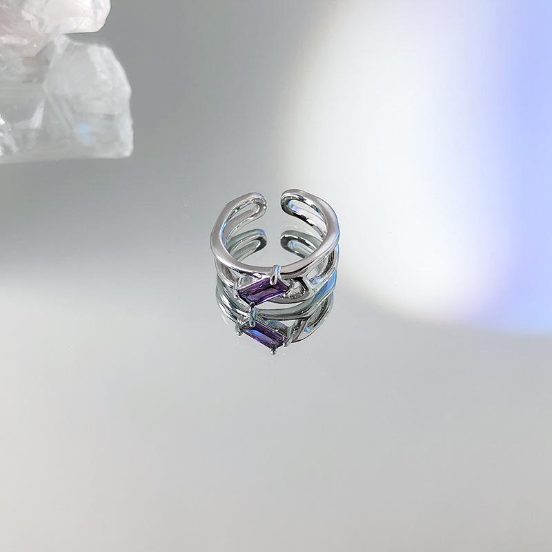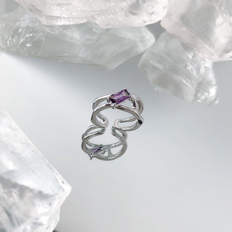 Anillo Geométrico de Doble Capa de Plata S925 Estilo Coreano para Mujer, Retro, Moda, Gema Púrpura, Anillo Abierto Elegante Hip-hop para Dedo