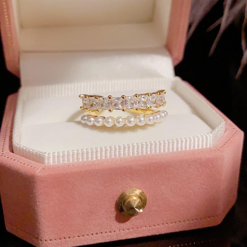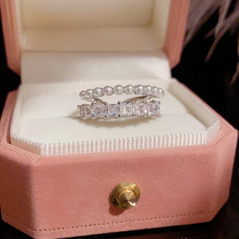 Anillo de Cuentas Pequeñas de Zirconia Exquisito de Lujo Ligero de Alta Gama Diseño de Nicho Simple de Moda Elegante Anillo Dulce Súper Brillante