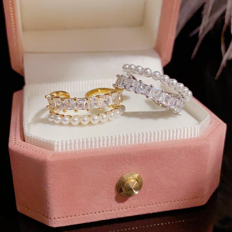 Gold-zircon millet beads ring (thick gold plating), silver-zircon beads ring (thick gold plating)