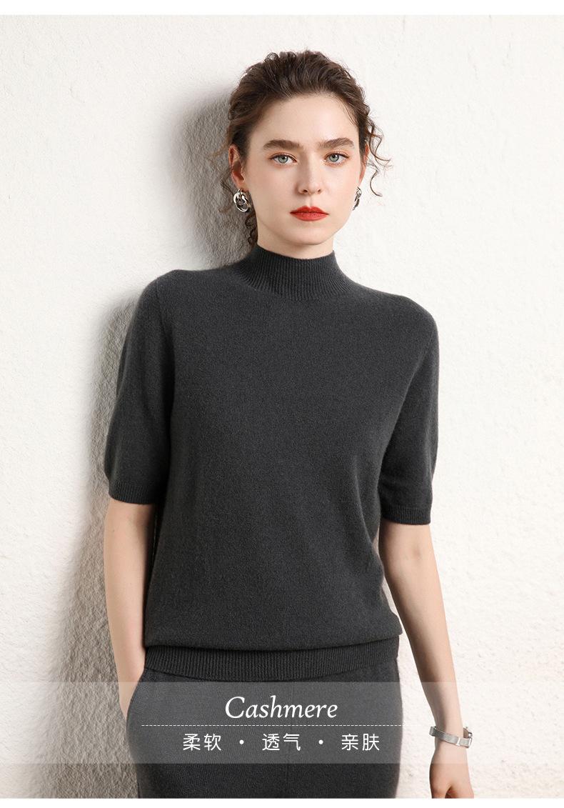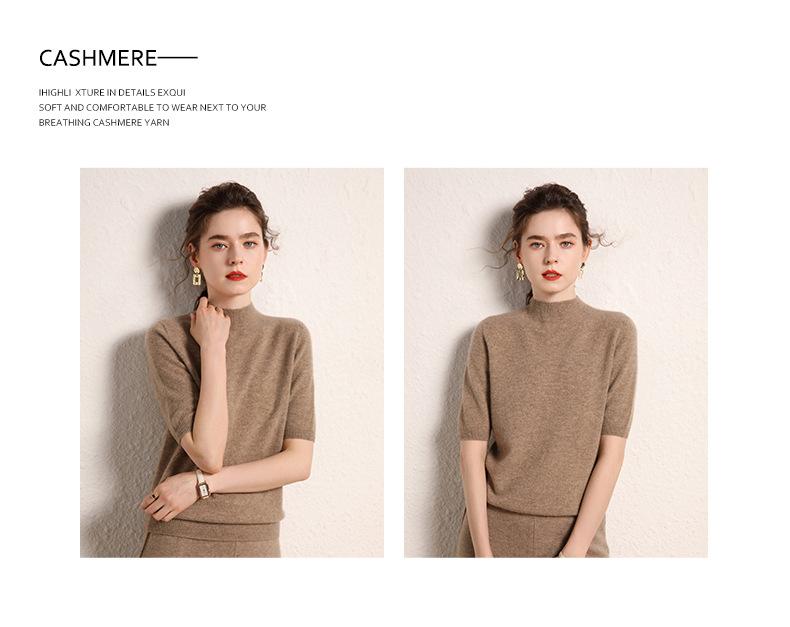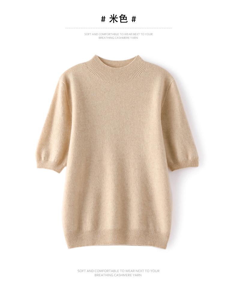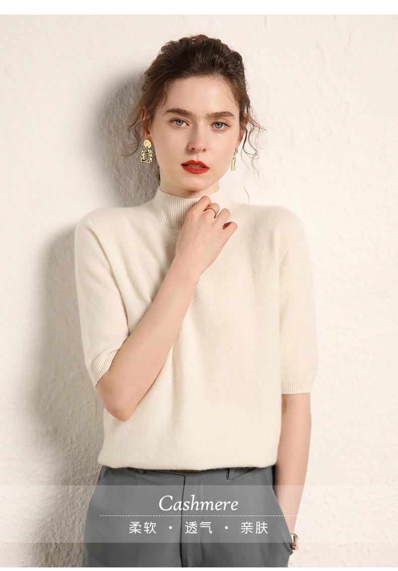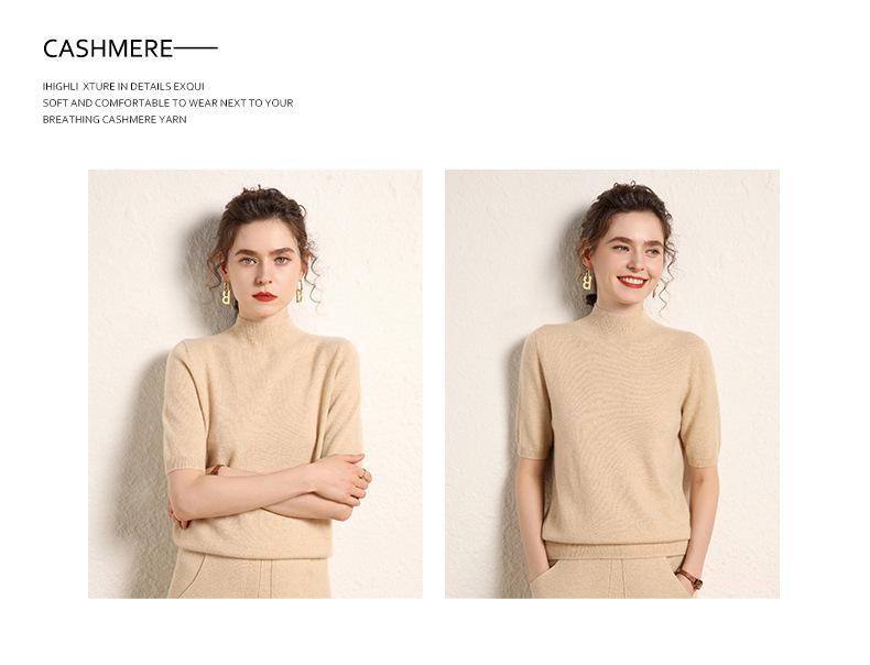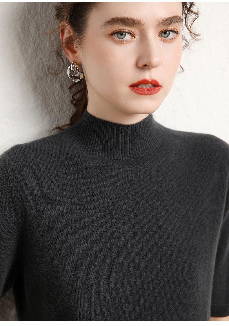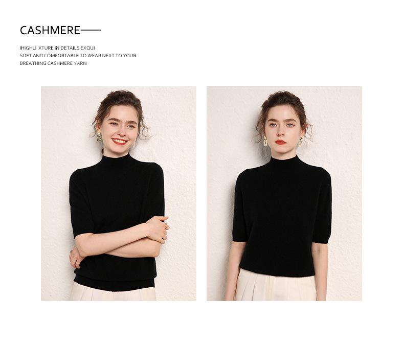Suéter básico de cachemira para mujer, otoño e invierno, cuello alto, corto, manga corta, básico, 2023