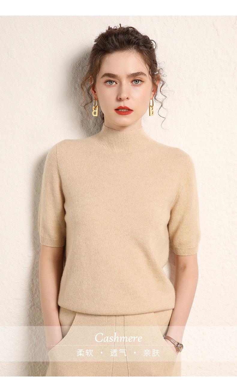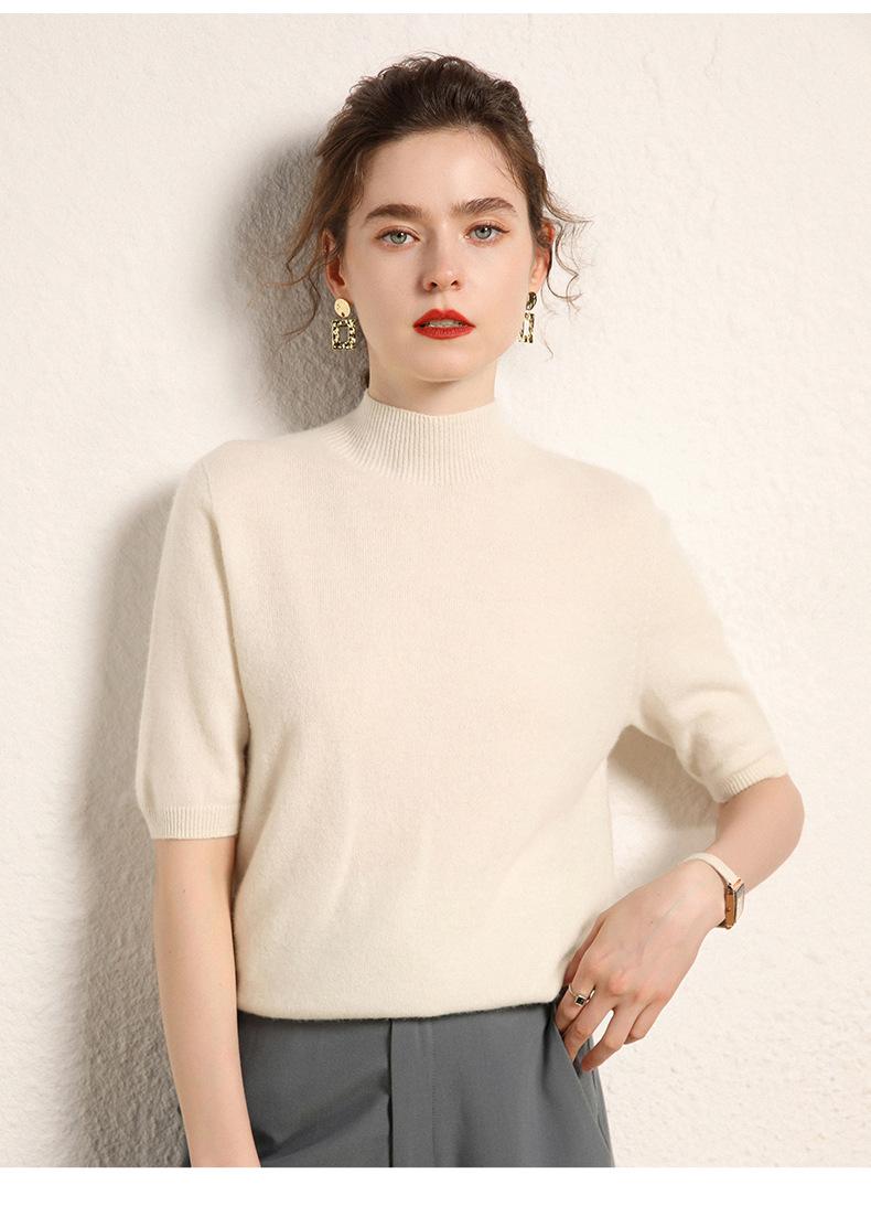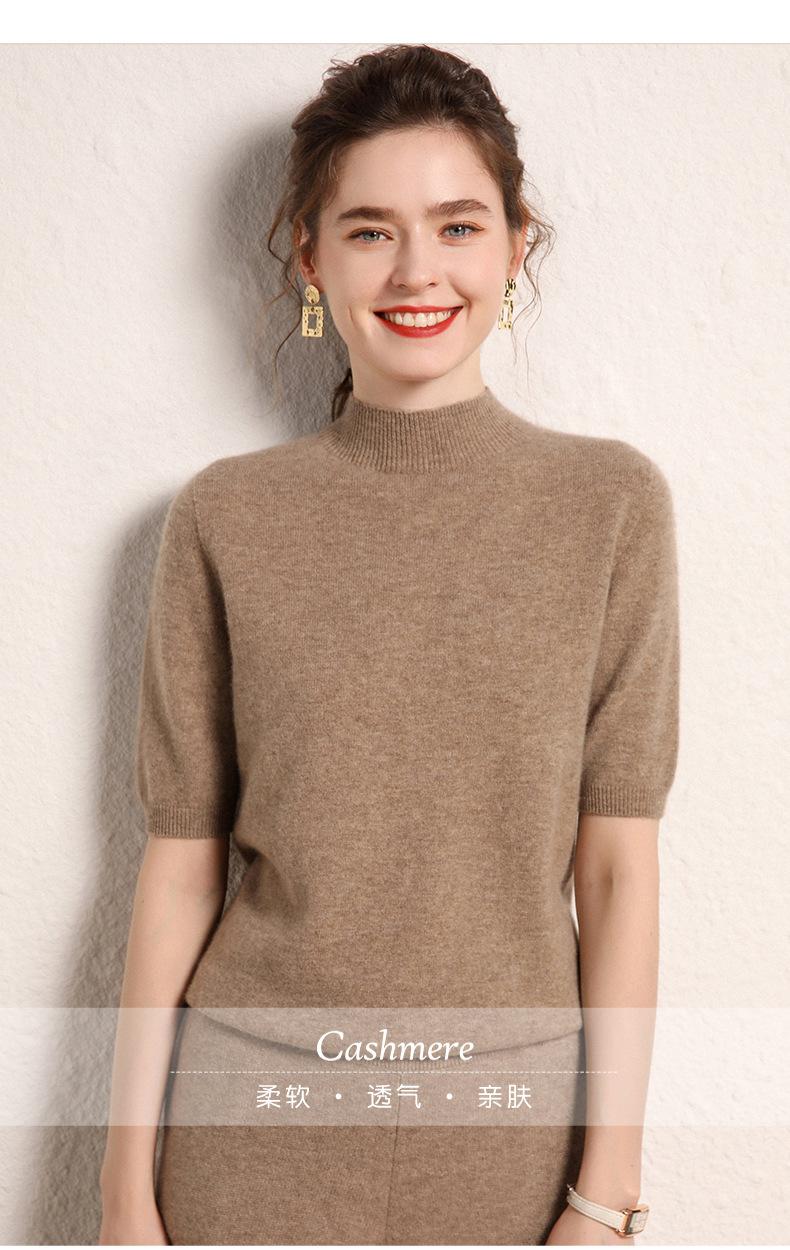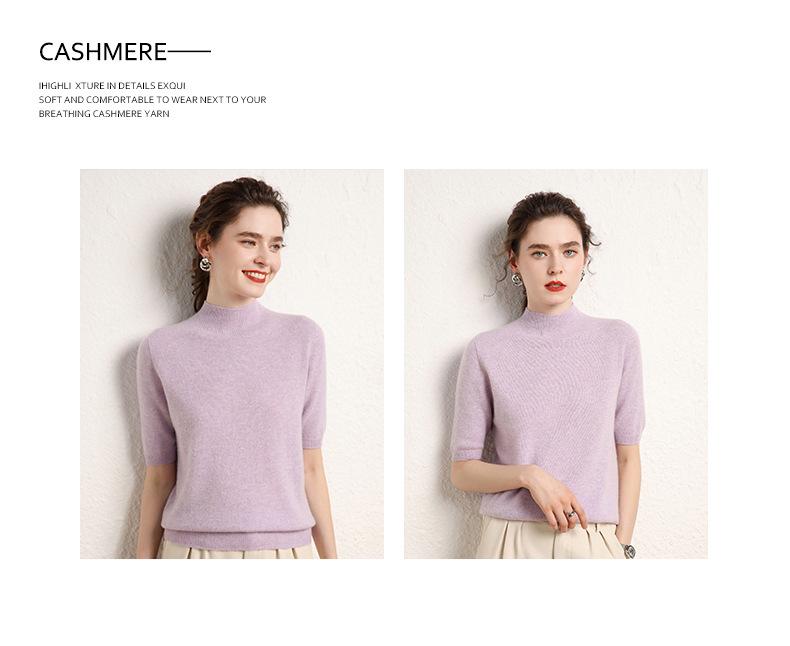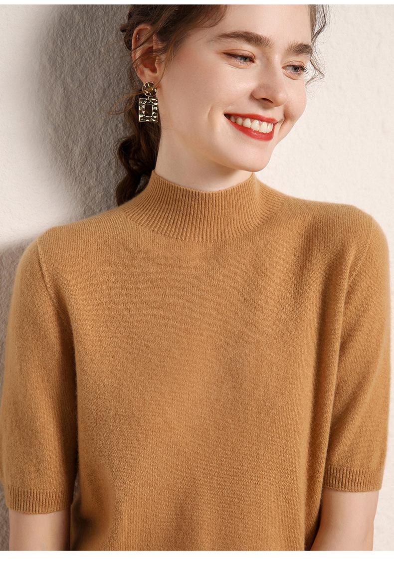 Suéter básico de cachemira para mujer, otoño e invierno, cuello alto, corto, manga corta, básico, 2023