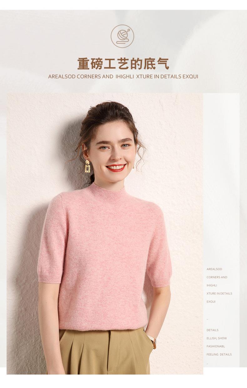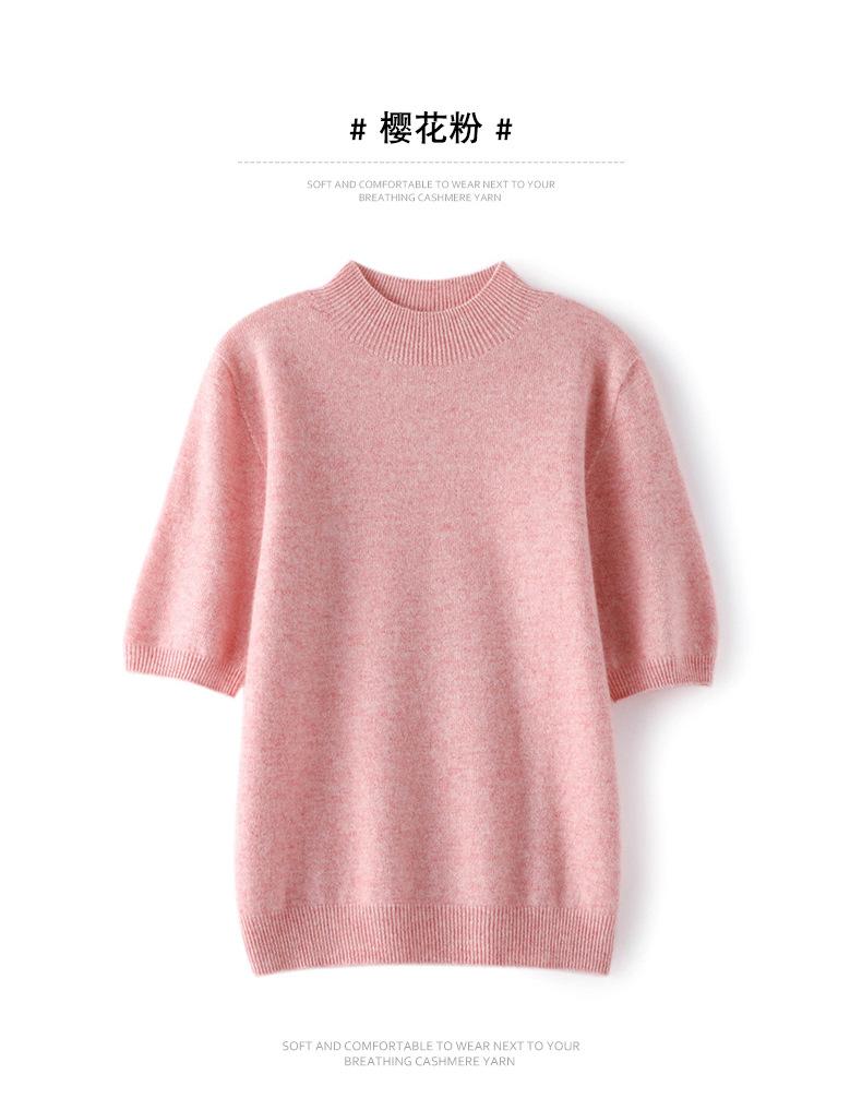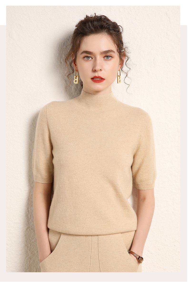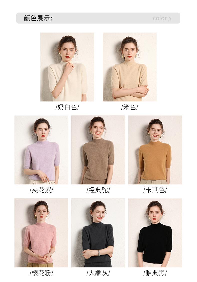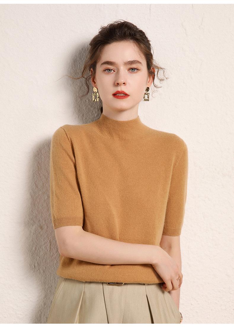 Suéter básico de cachemira para mujer, otoño e invierno, cuello alto, corto, manga corta, básico, 2023