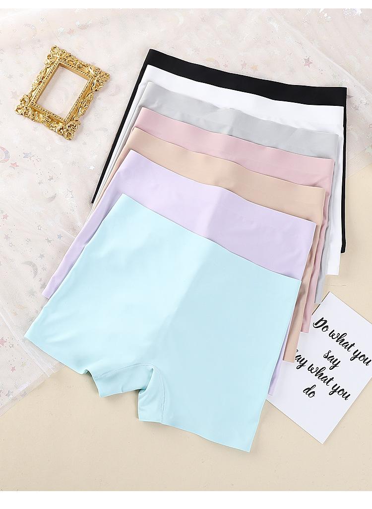 Calzoncillos tipo bóxer de una pieza de seda de hielo sin costuras, de cintura media, de algodón, de color sólido, transpirables, de talla grande, para mujer, pantalones de seguridad antideslizantes.