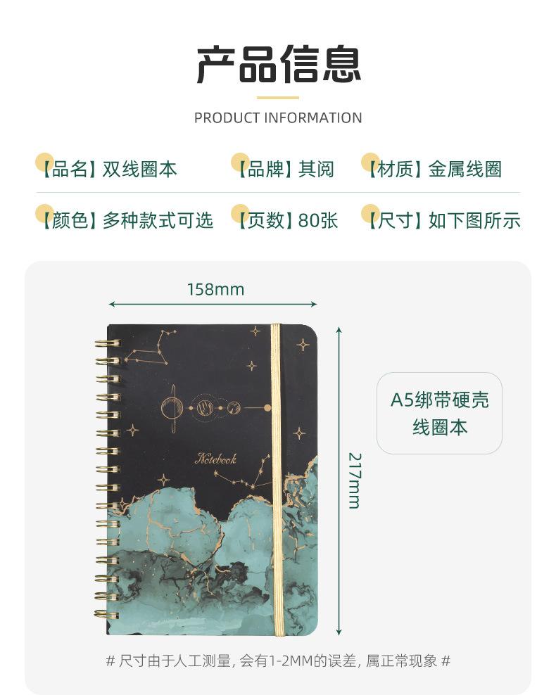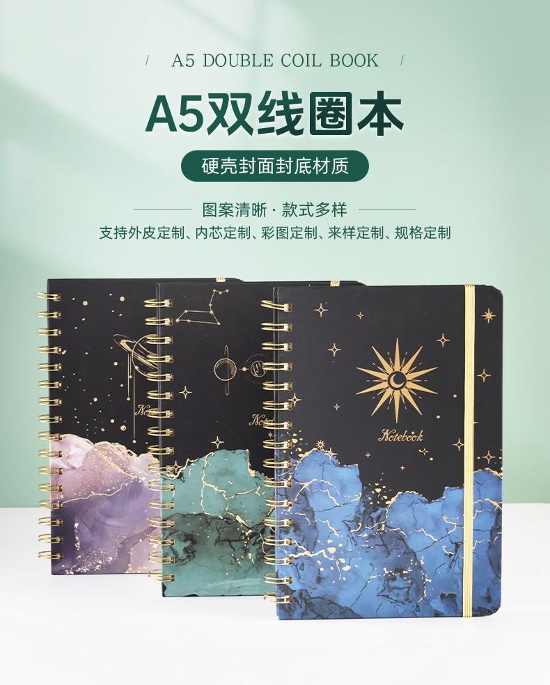 Cuaderno de espiral A5 con diseño de estrellas, cuaderno con correa de espiral, versión de 80 líneas horizontales, venta al por mayor