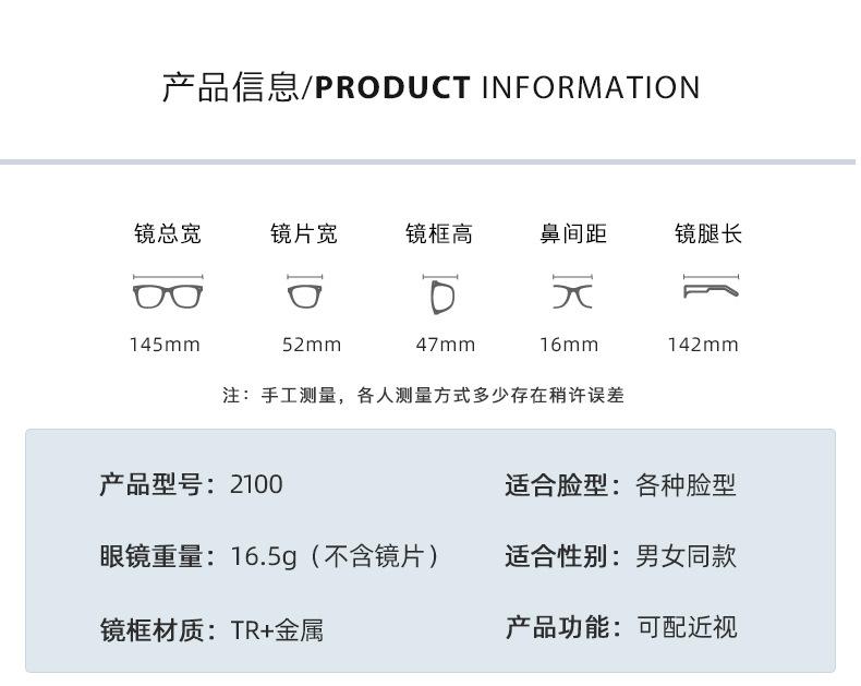 | Nuevos lentes retro TR de luz azul anti-luz para mujer, moda网红, fotografía callejera, montura de gafas sencilla, espejo plano 01247 al por mayor ¥11.00 Compre ya | Armazón de metal retro para cejas de negocios, armazón de gafas de moda, armazón de gafas Cro, para hombre, negocios K0062 ¥13.00 Compre ya | 5374TR90 Montura de gafas coreana montura negra montura para gafas de miopía ovalada recomendada por Xiaohongshu óptica lisa anti-luz azul ¥8.00 Compre ya | Gafas de carey de montura redonda superventas en Douyin, artefacto de maquillaje de los primeros ochenta, gafas anti luz azul, se pueden combinar con gafas para miopía 30333 ¥14.00 Compre ya | |