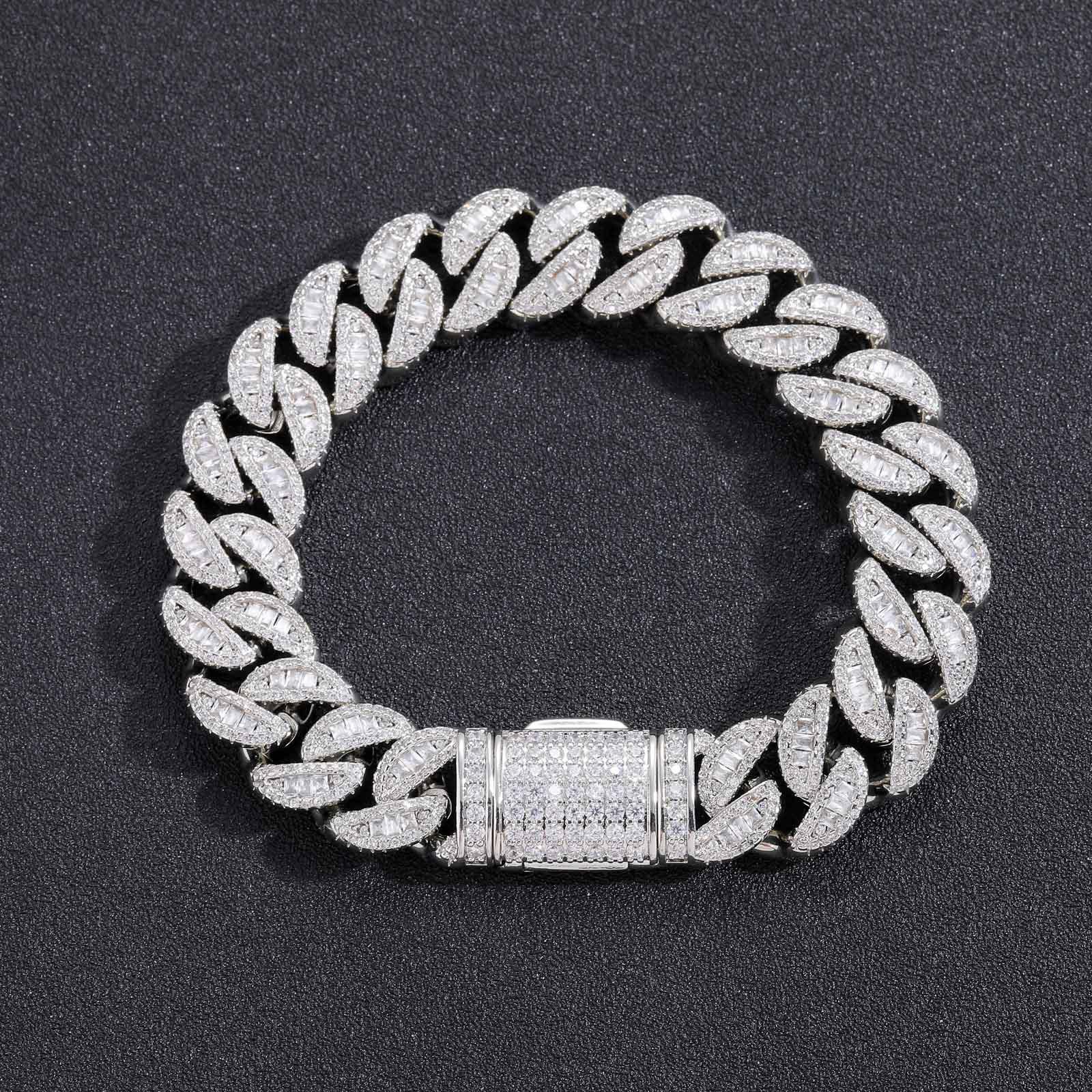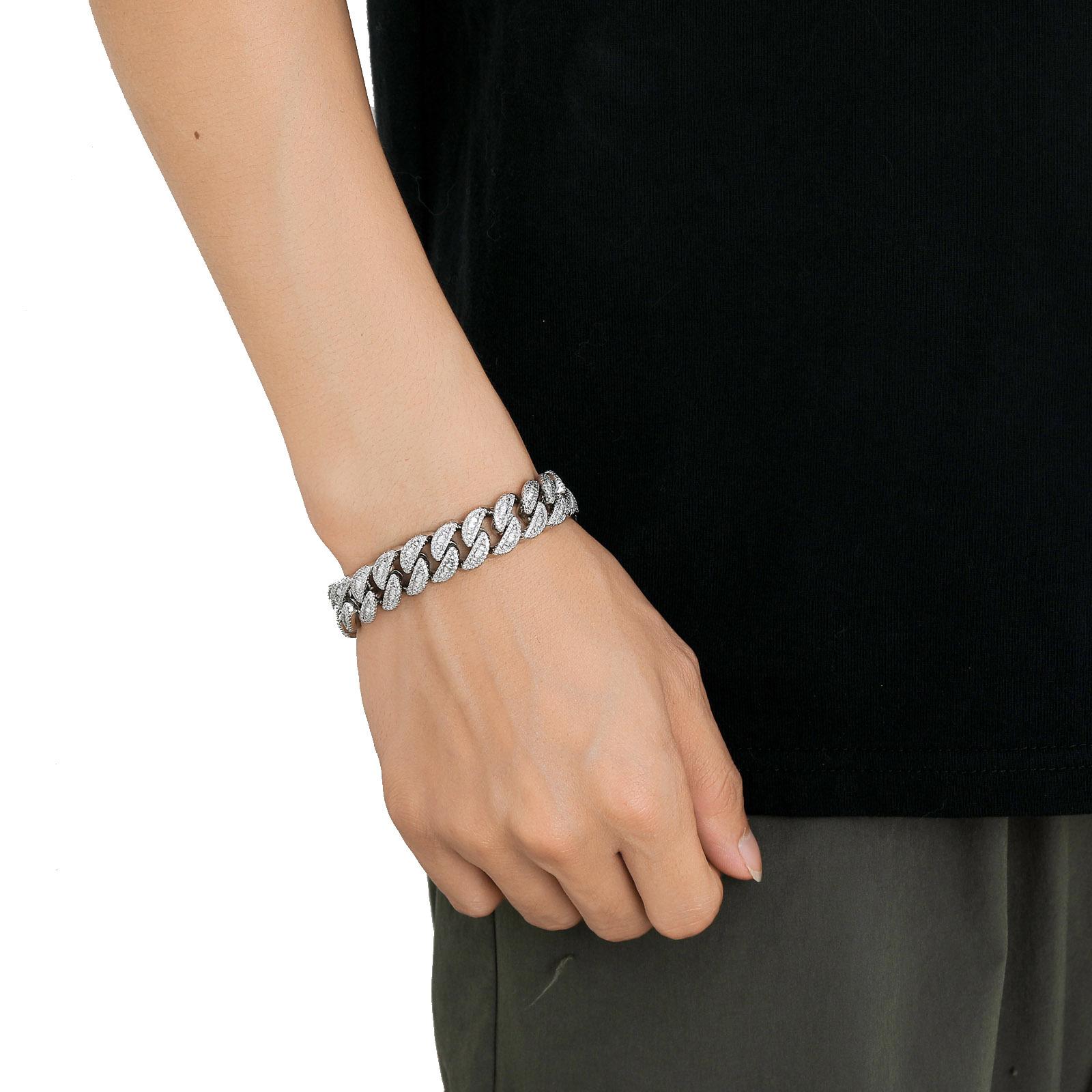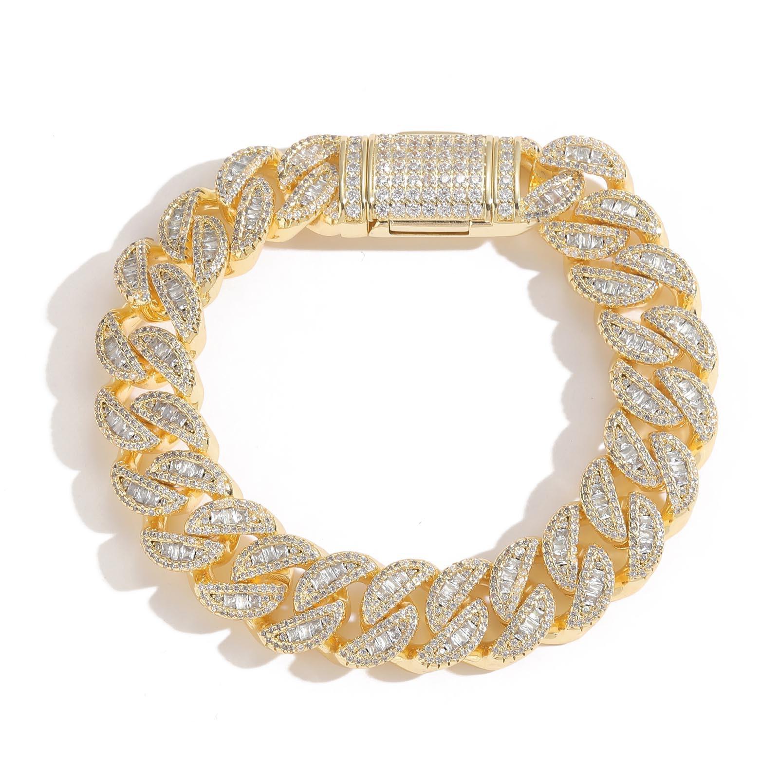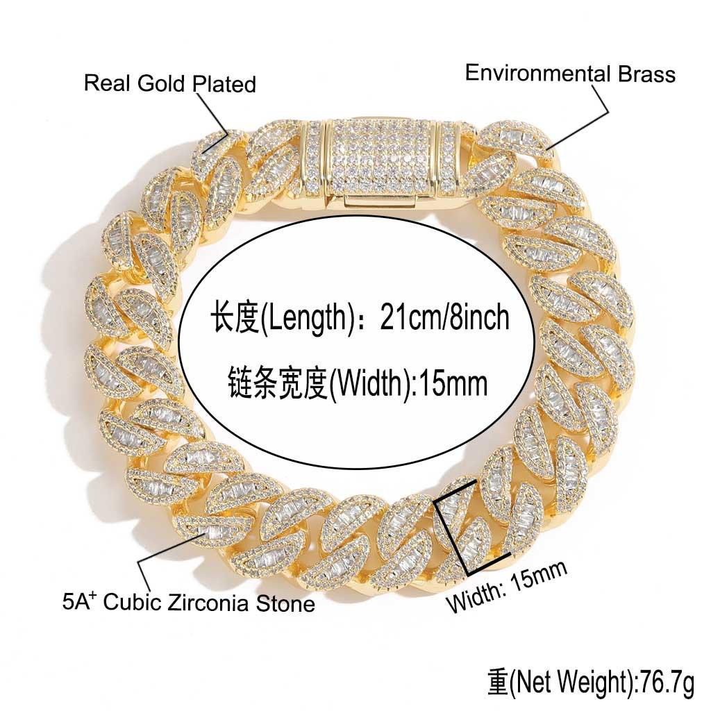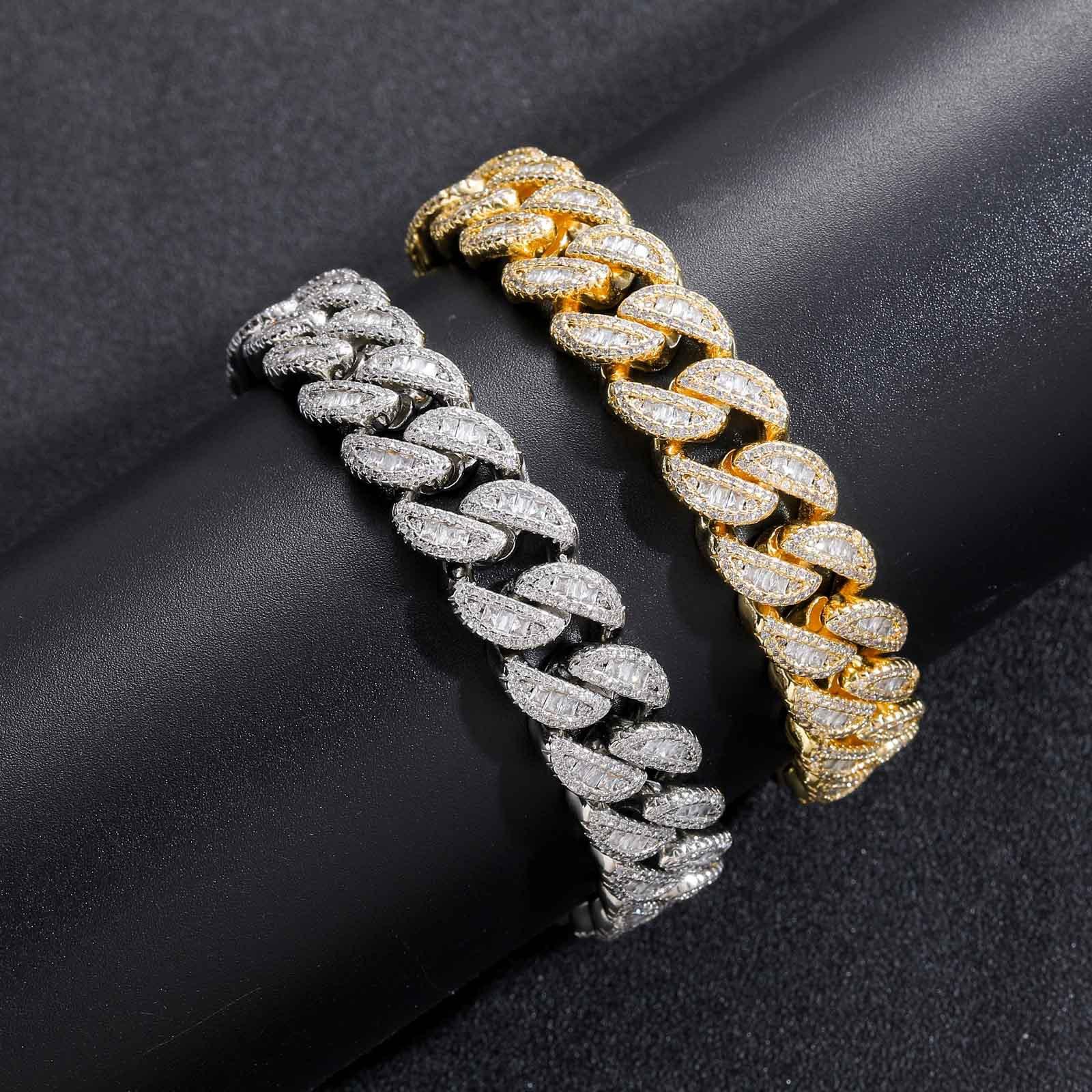 Collar hip hop europeo y americano transfronterizo de 15 mm con incrustaciones mixtas de diamantes cuadrados y redondos, circonita cuadrada T, cadena cubana, personalidad moderna, pulsera para hombre