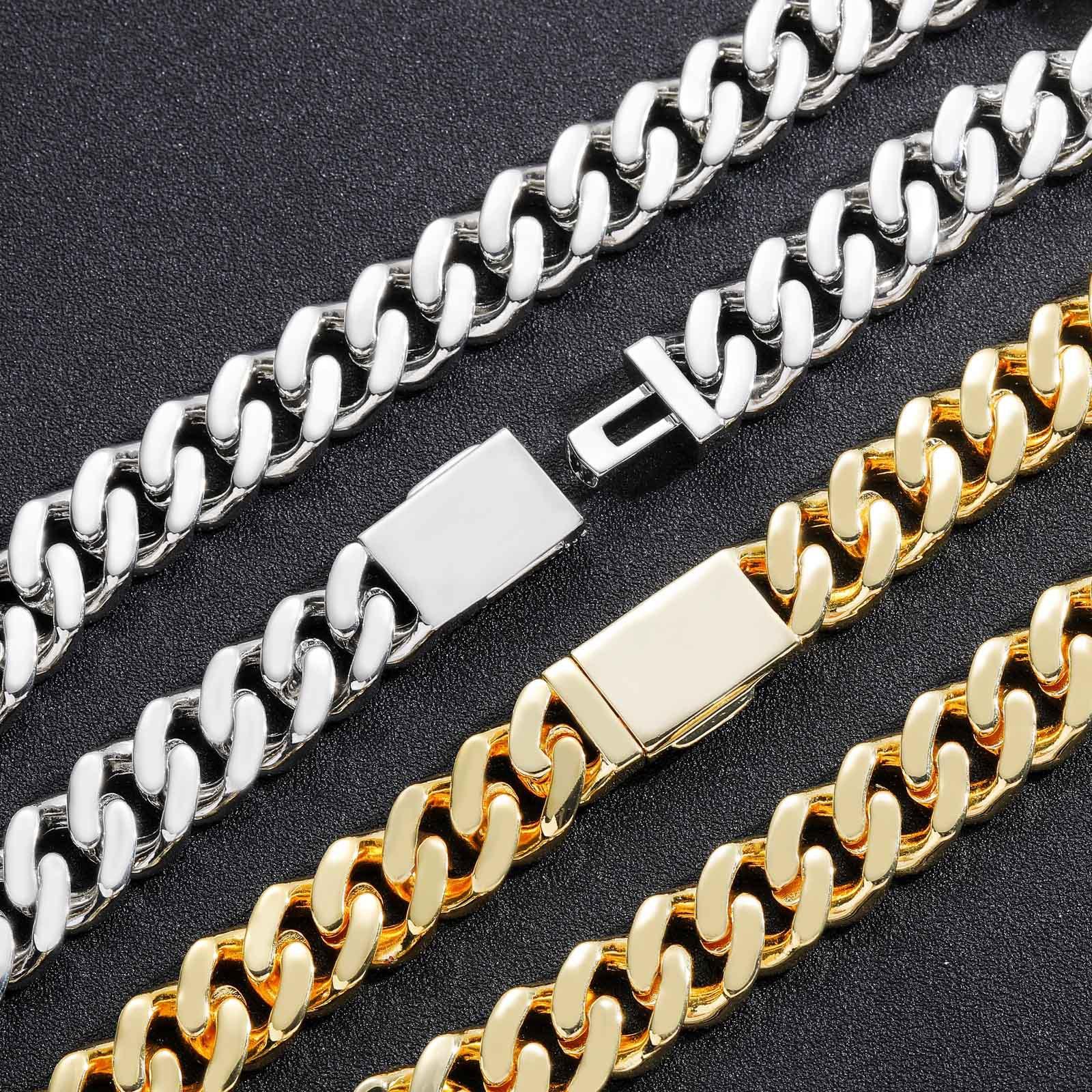 Collar de hip-hop europeo y americano de 20 mm con hebilla de caja y barra de la industria pesada de Miami, cadena cubana llena de circonitas, collar de hip-hop para hombre