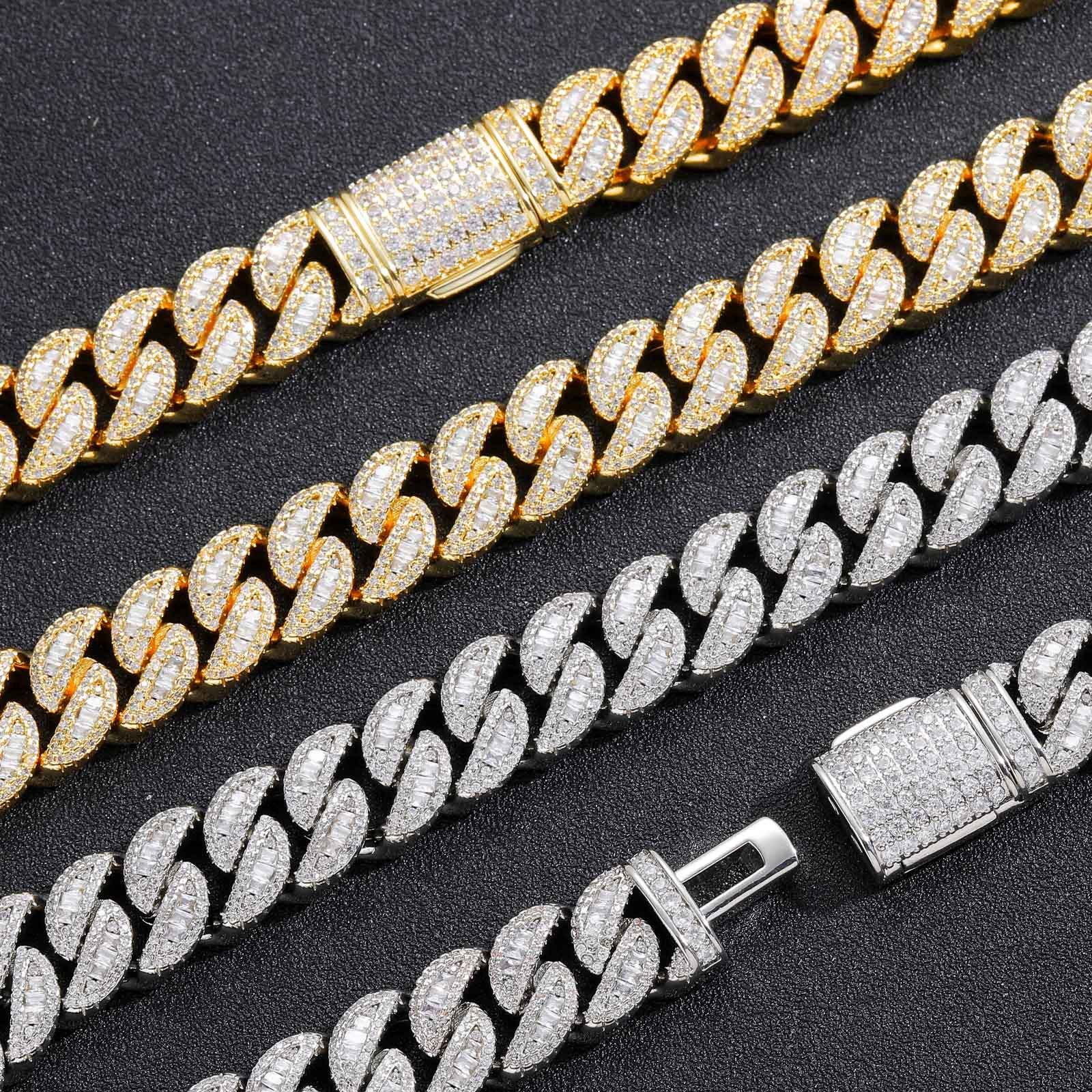 Collar de hip-hop con barra cubana de estilo hip-hop para hombres europeos y americanos, con incrustaciones de cobre y circonita de 14 mm en forma de diamante, cadena cubana de estilo hip-hop.