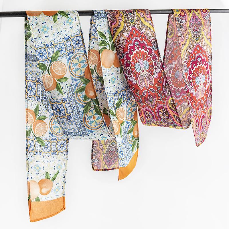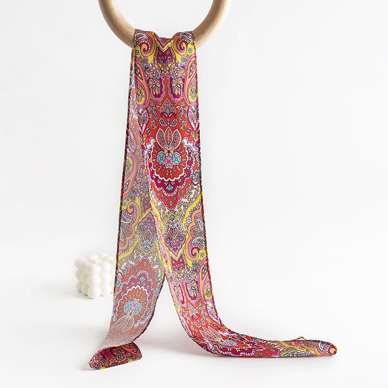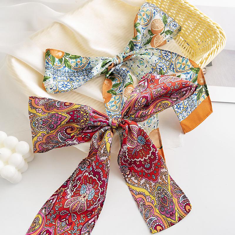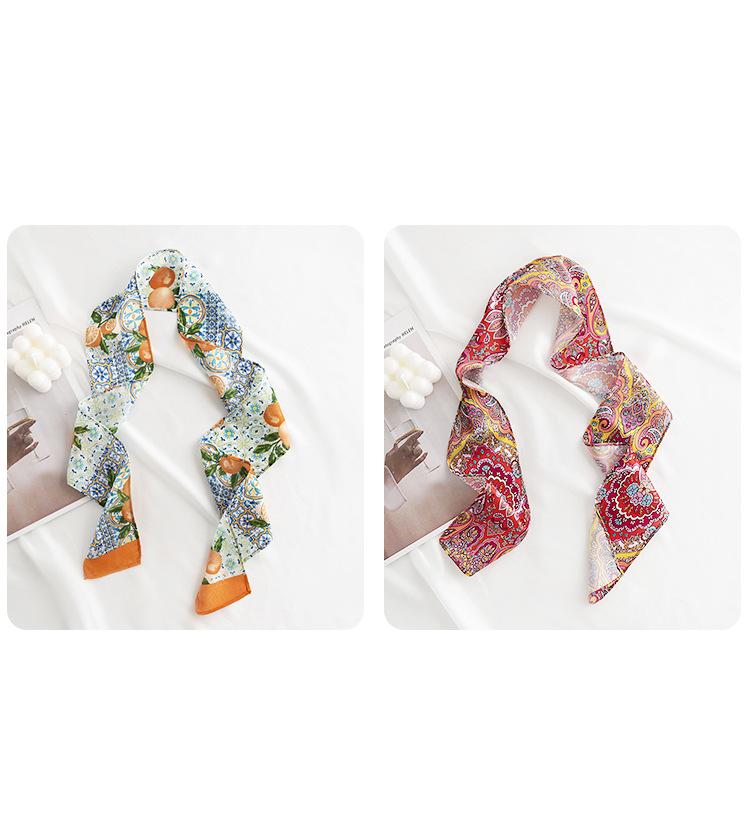 Bufanda Larga de Seda Simulada Nueva de Alta Gama para Mujer Primavera Nueva Estampada Versátil Cinta Bufanda de Seda Estilo Coreano de Alta Gama
