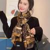 Bufanda de lana 100 % gruesa a cuadros para otoño e invierno, con un toque de atmósfera, para mujer, versátil, de moda, cálida y cómoda para el cuello.