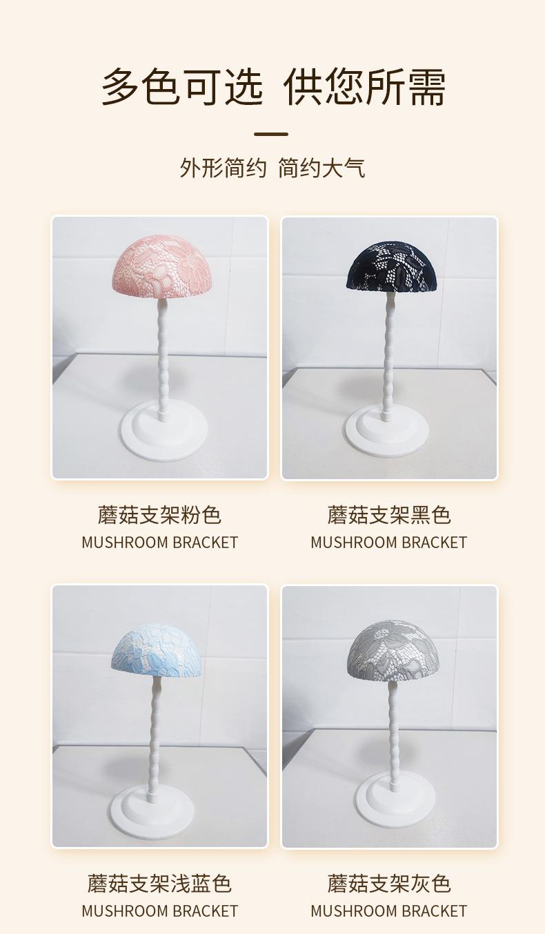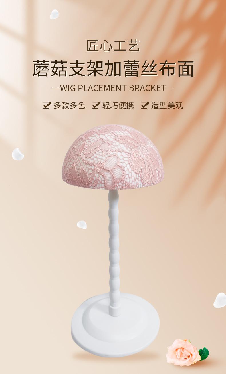 Soporte para peluca con forma de hongo, soporte para peluca, soporte para peluca, estante de almacenamiento con superficie de tela de encaje, soporte para peluca para hombres y mujeres