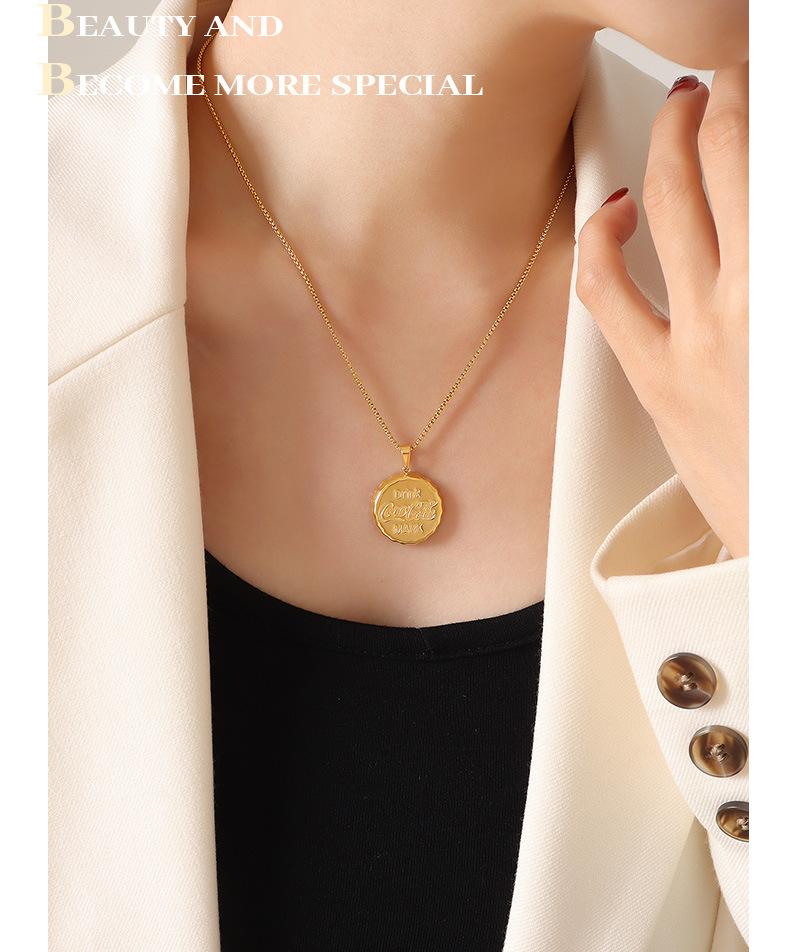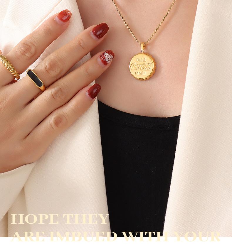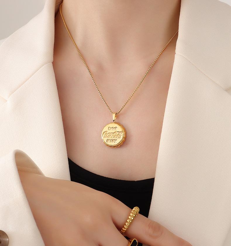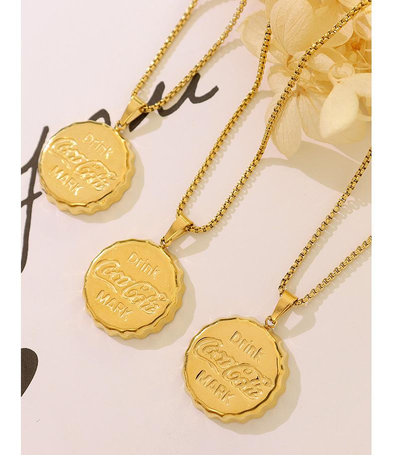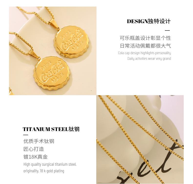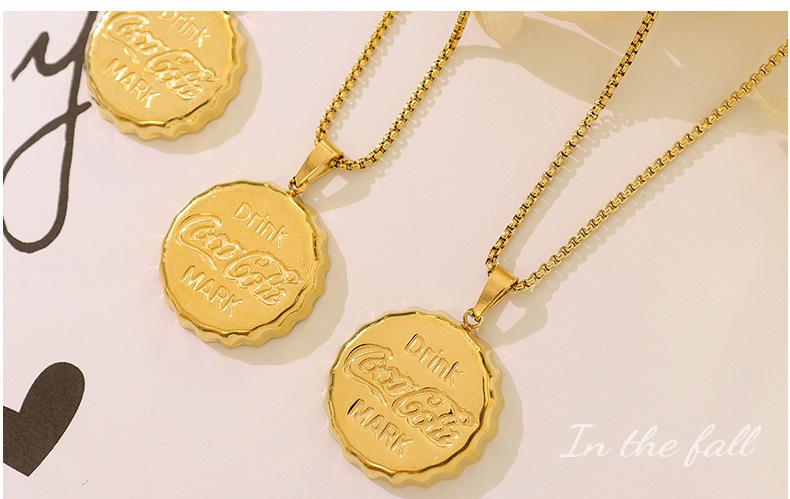 Collar con colgante de tapa de botella, estilo hip hop punk europeo y americano, diseño de nicho, cadena de clavícula de acero de titanio chapada en oro a la moda.