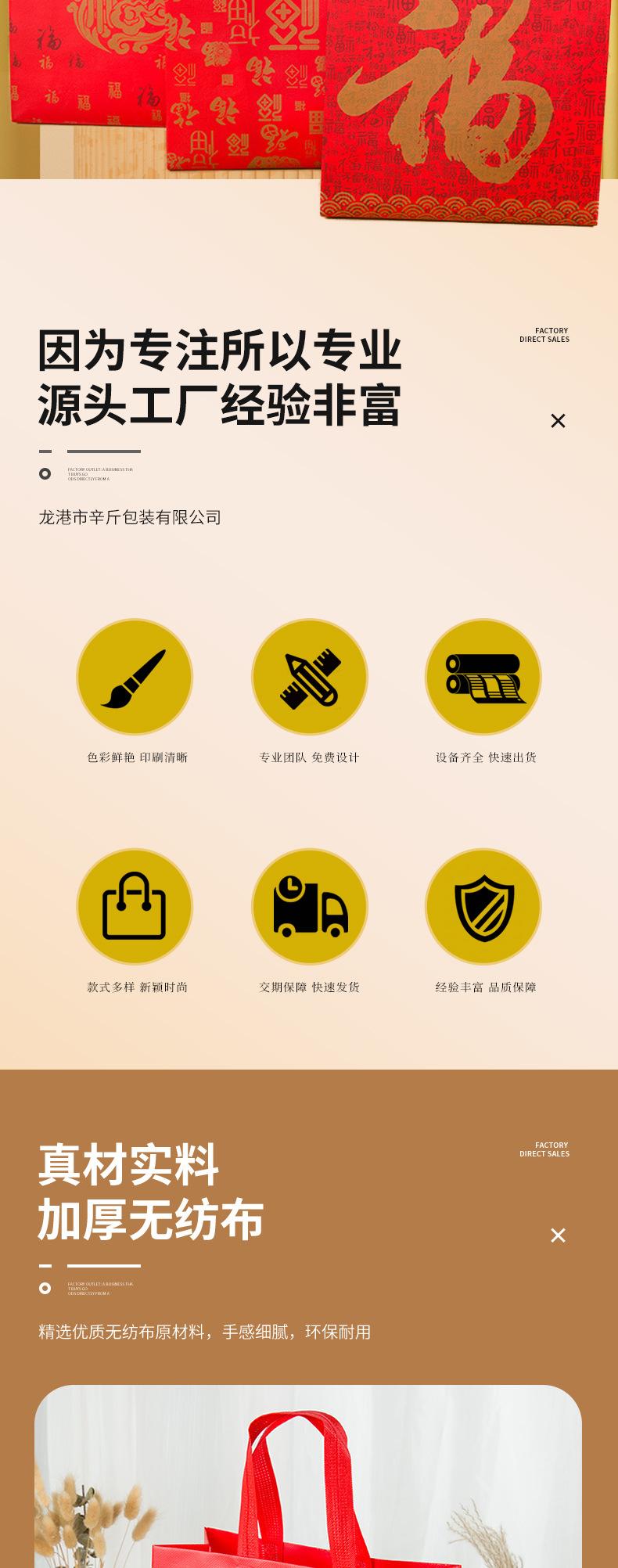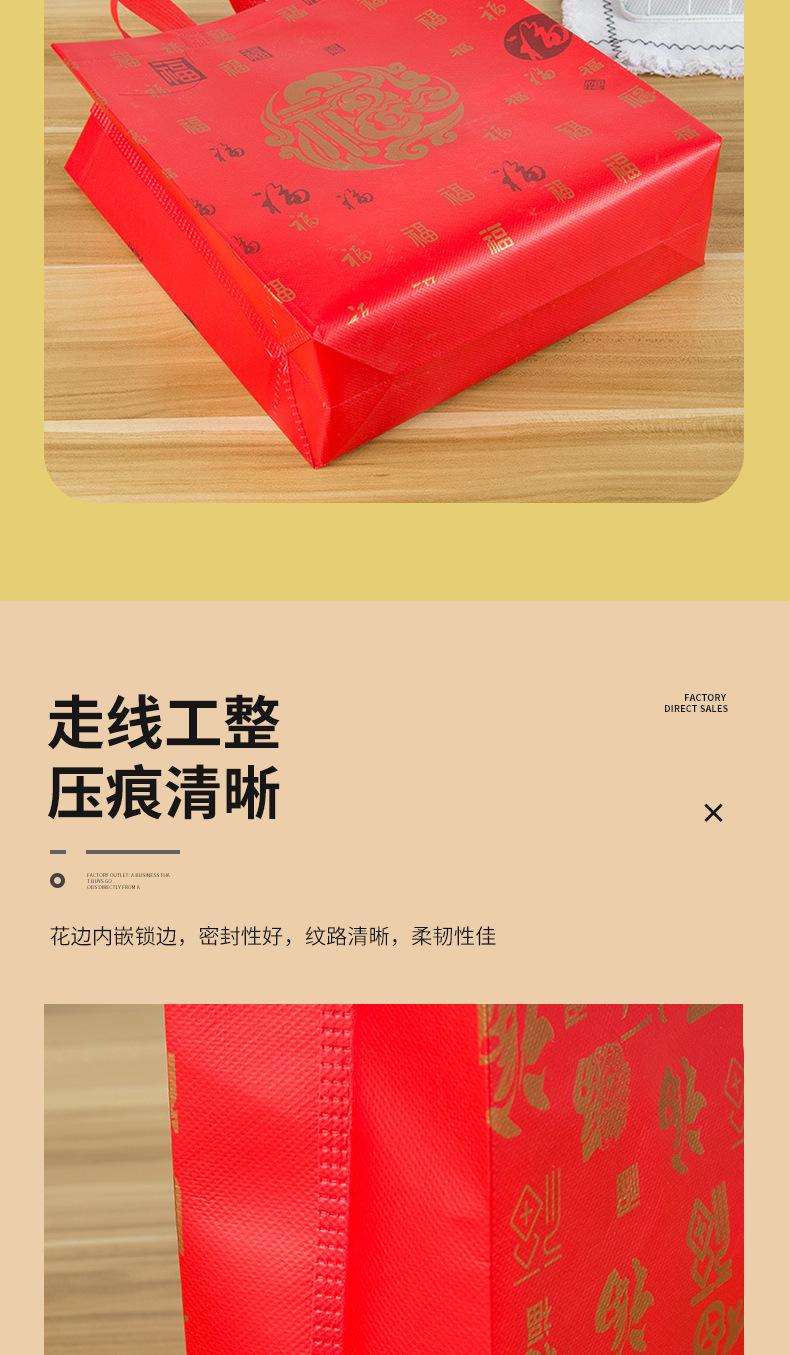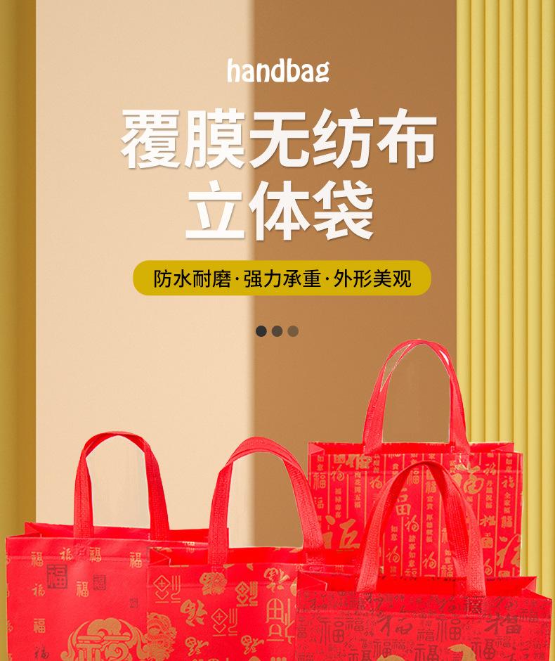 Bolsa de Mano Festiva de Año Nuevo de Tela No Tejida Palabra de Bendición Roja Bolsas de Regalo para las Fiestas Paz y Alegría Bolsas de Embalaje para Regalos