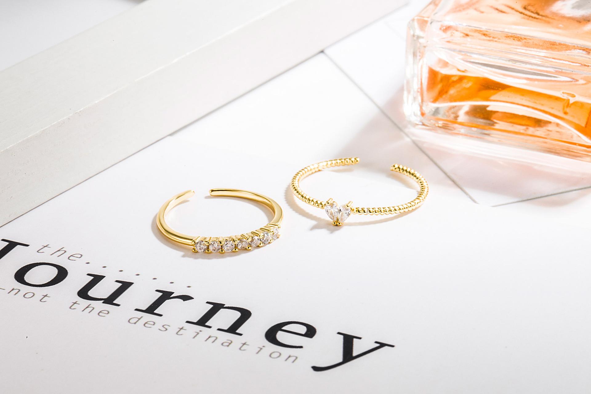 Exquisito anillo de amor de circonita Anillo de dos piezas abierto ajustable para mujer dedo índice delgado para viajero diario