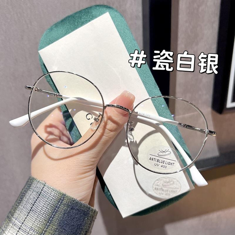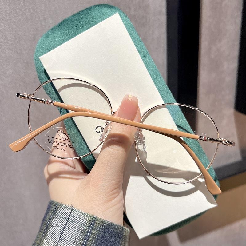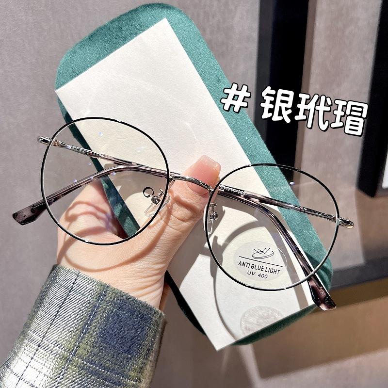 Gafas de sol redondas de metal con montura redonda y lisa para mujer, estilo nuevo, sencillas, combinables con todo, con protección contra la luz azul y miopía.