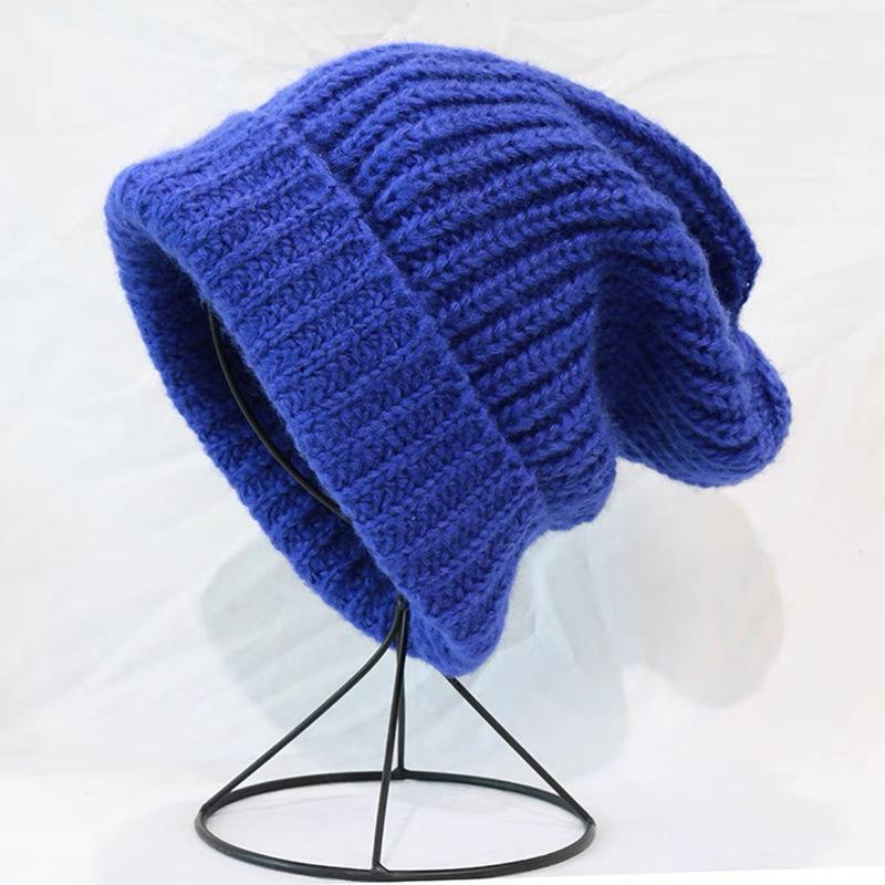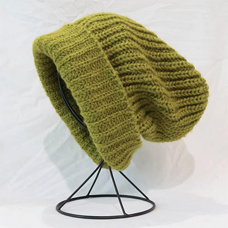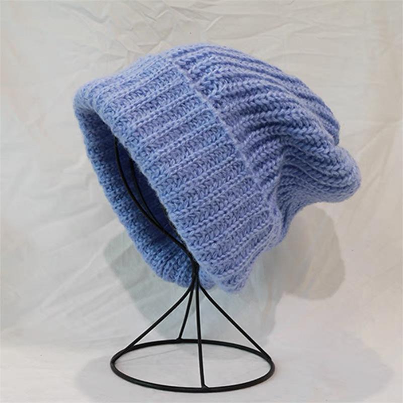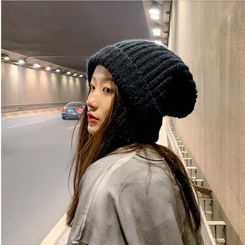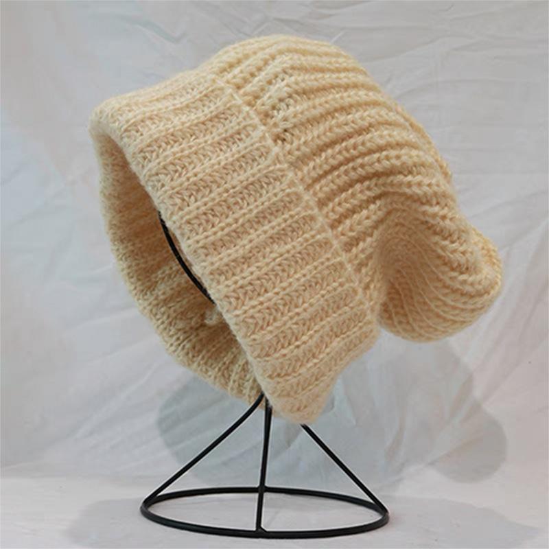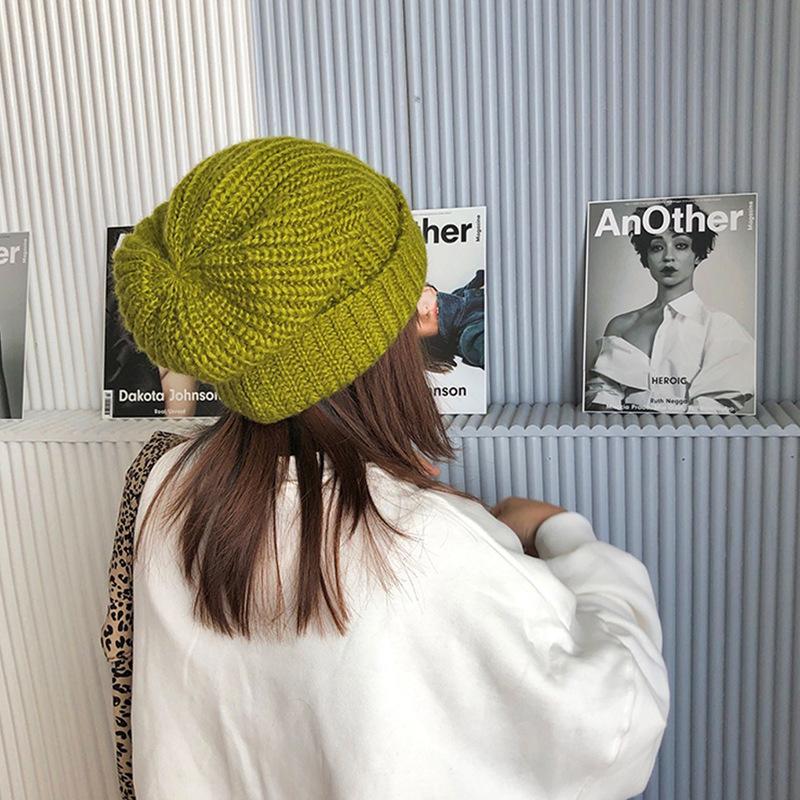 Otoño e Invierno Cálido Gorro de Punto para Mujer Cara Pequeña Combinable Color Sólido Gorro Grueso de Lana Moda Coreana Combinable Elástico Gorro para el Frío