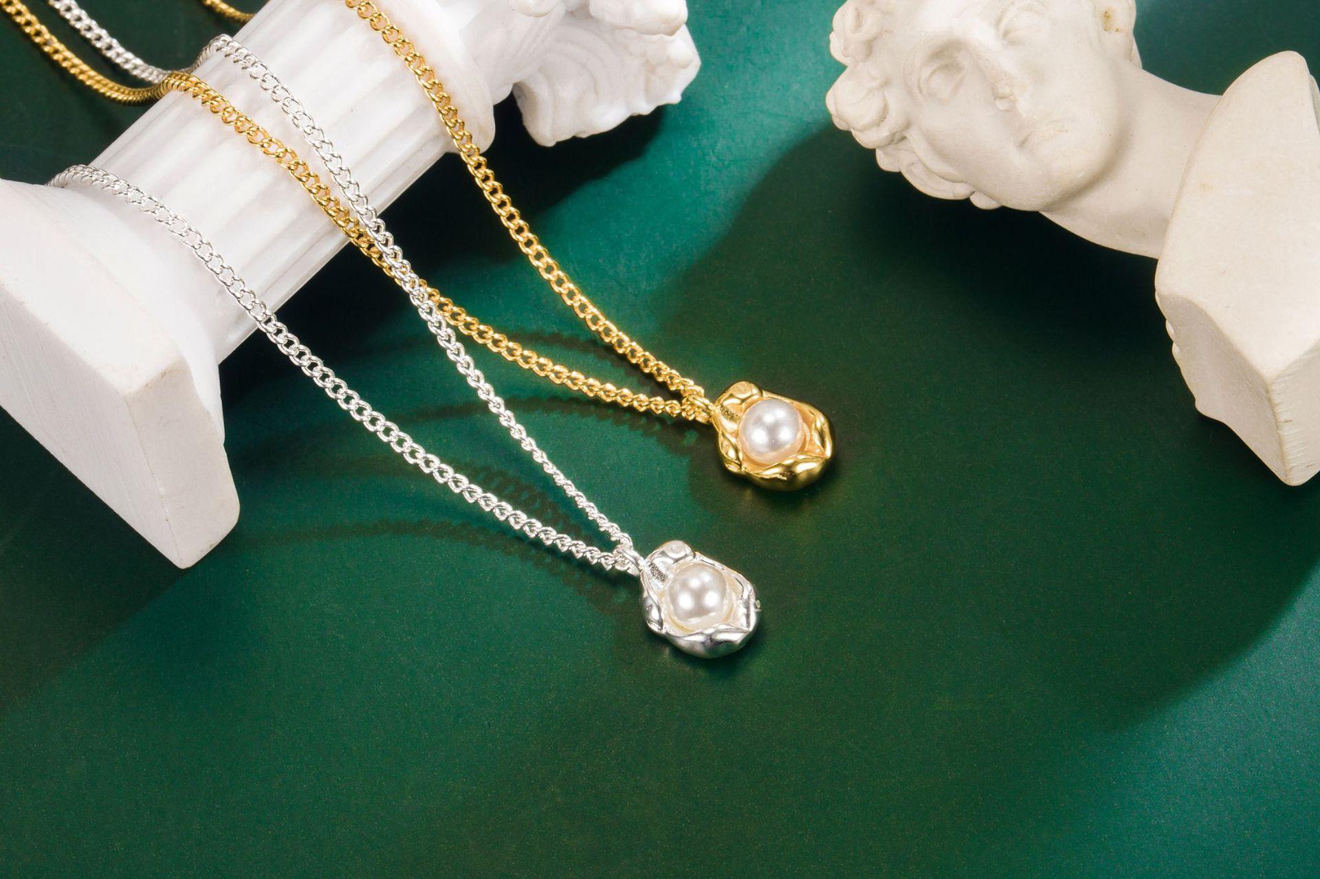 Gold Bean Pearl Necklace (Silver), Gold Bean Pearl Necklace (Gold)
