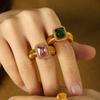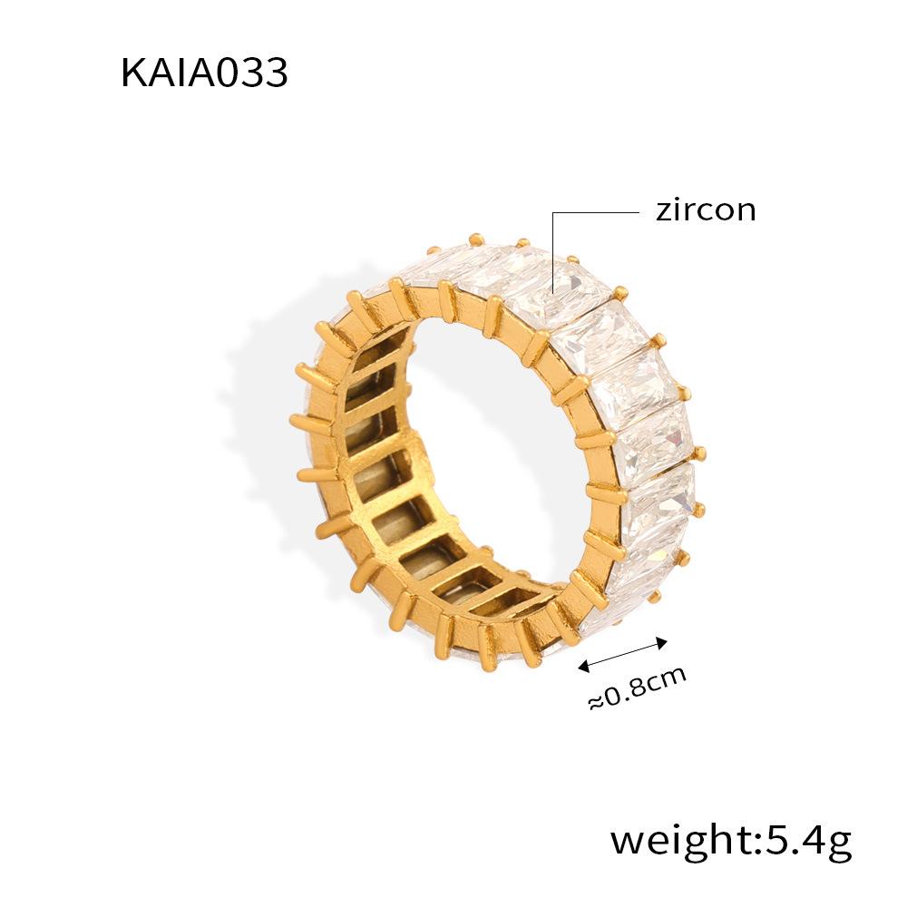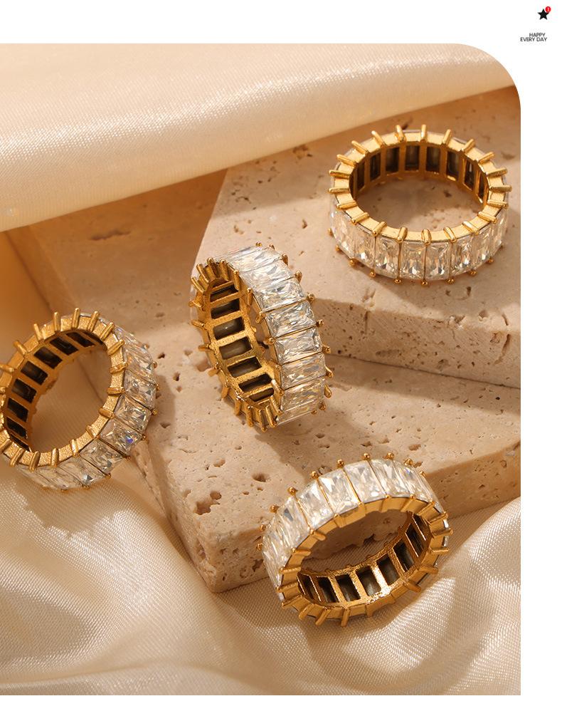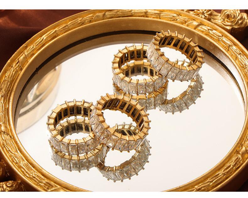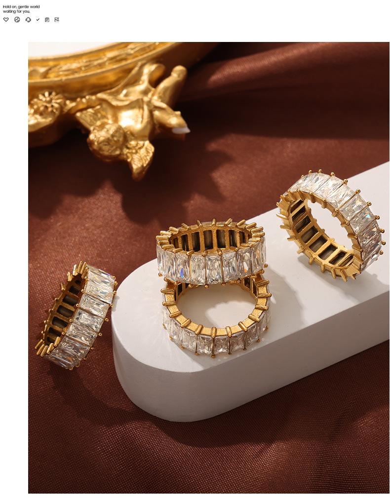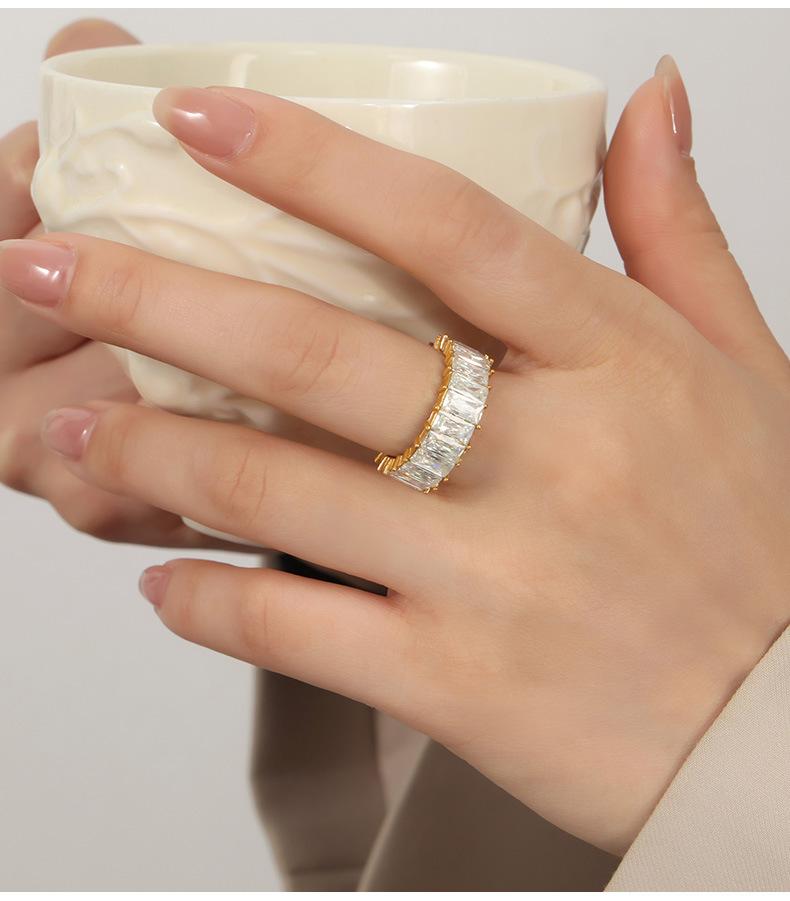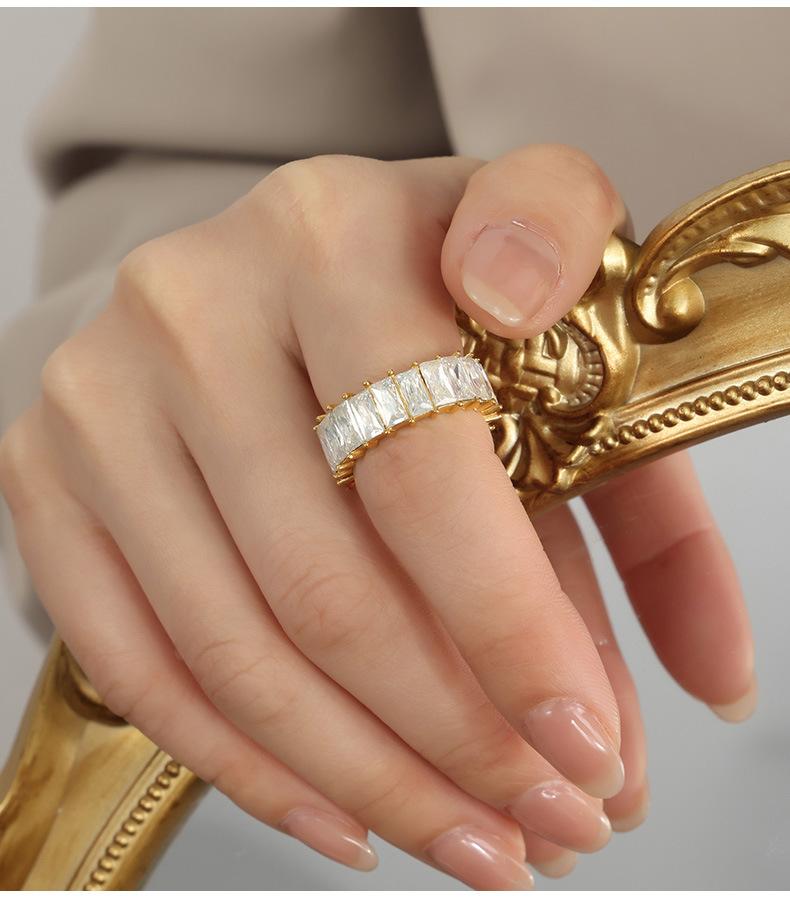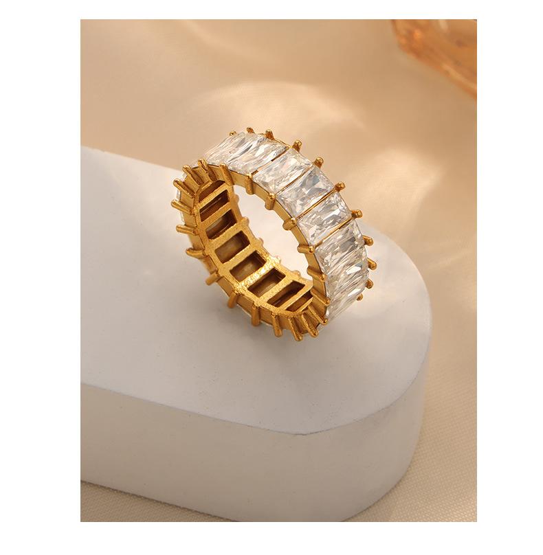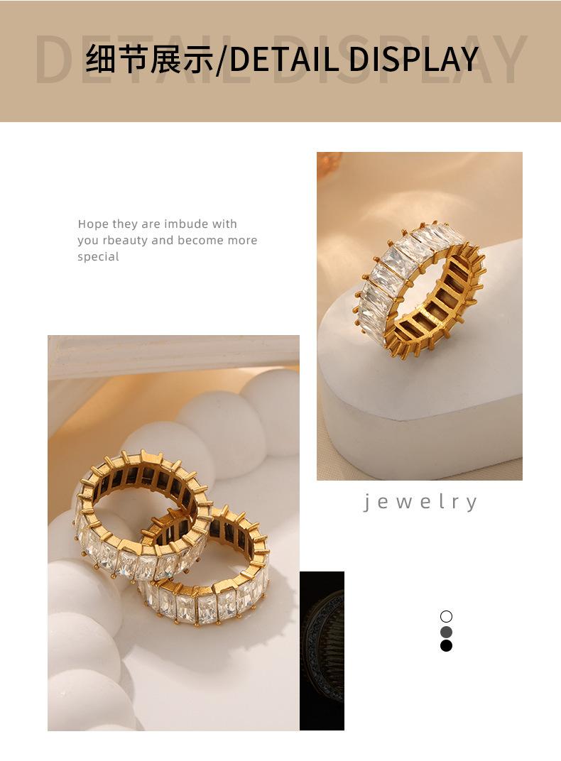 Nuevo anillo de moda de lujo ligero transfronterizo con personalidad de acero de titanio chapado en oro con diseño de circonita, joyería al por mayor para mujeres
