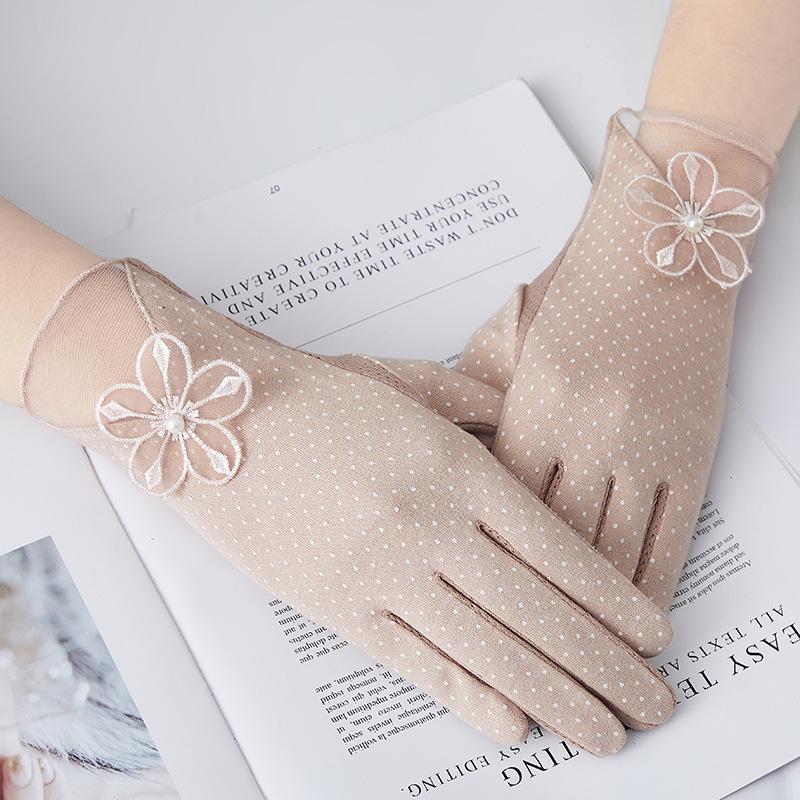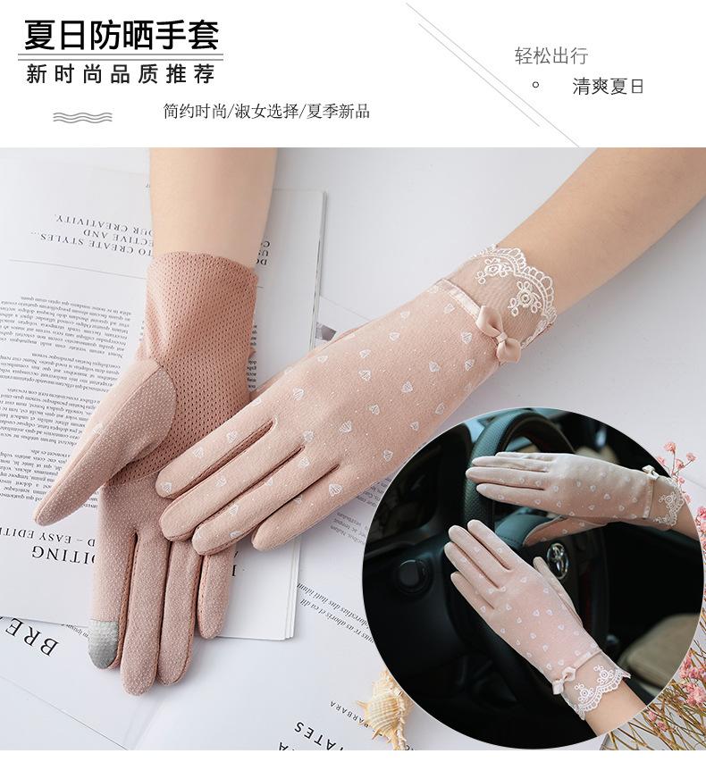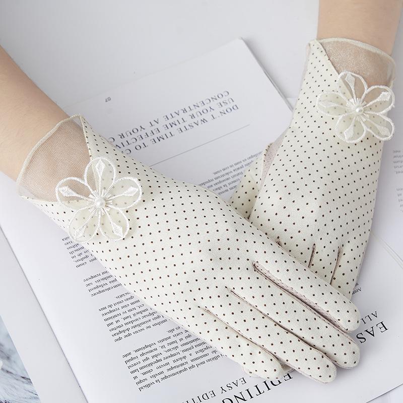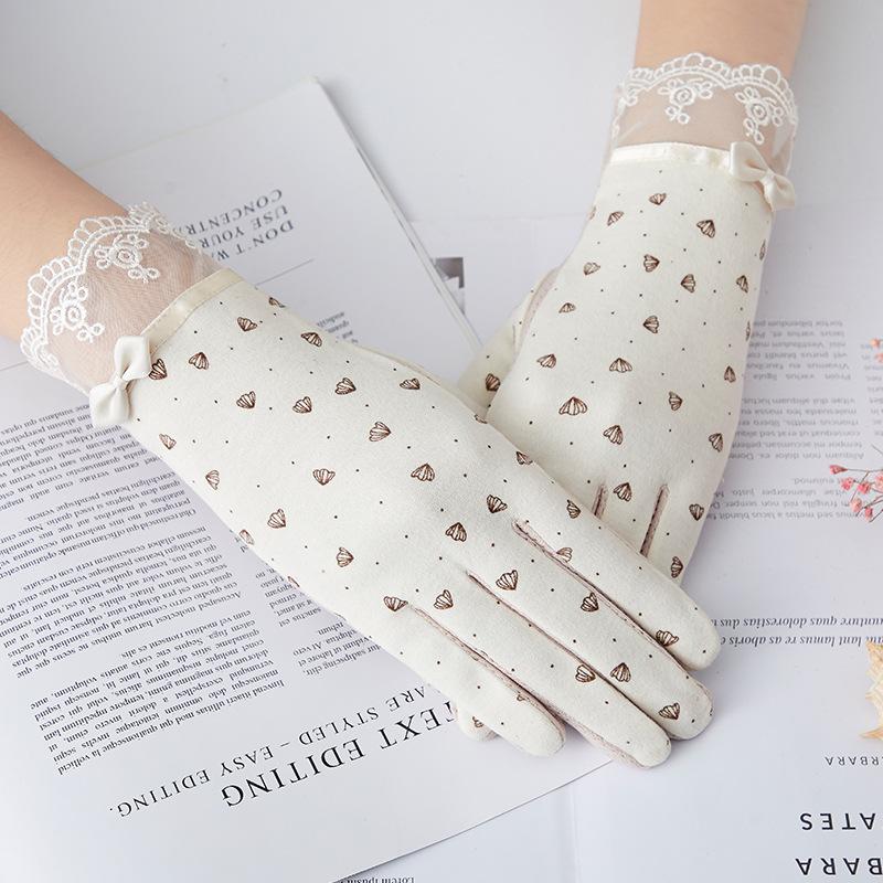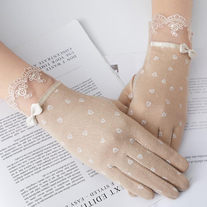 Guantes nuevos de protección solar para mujer, verano, elásticos, delgados, con pantalla táctil, para montar, conducir coche eléctrico, guantes de encaje para mujer, algodón, venta al por mayor
