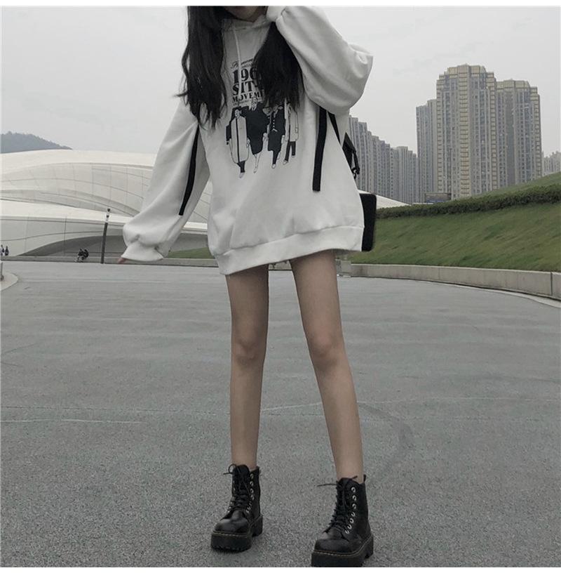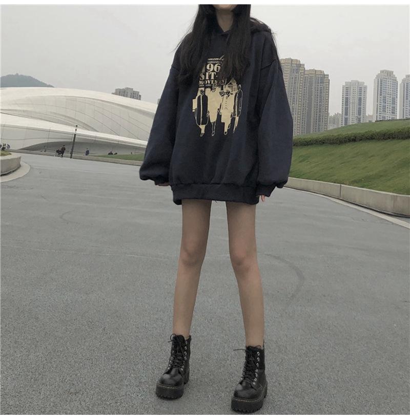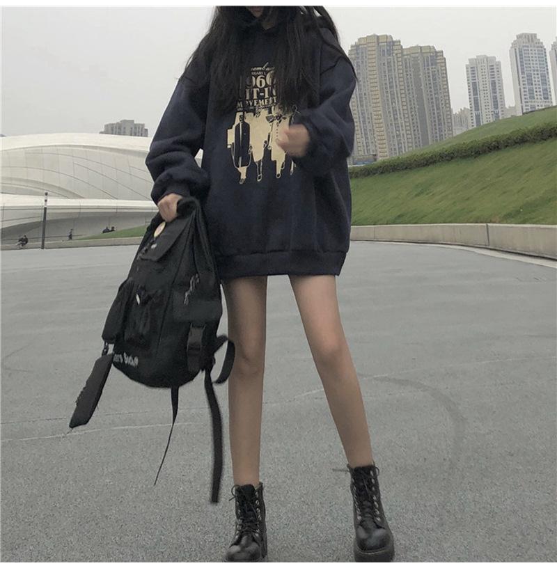Suéter forrado de vellón, ropa de mujer, otoño e invierno, nuevo estilo coreano, suelto, retro, estilo Hong Kong, abrigo de estudiante con capucha, ropa de mujer, entrega de una pieza