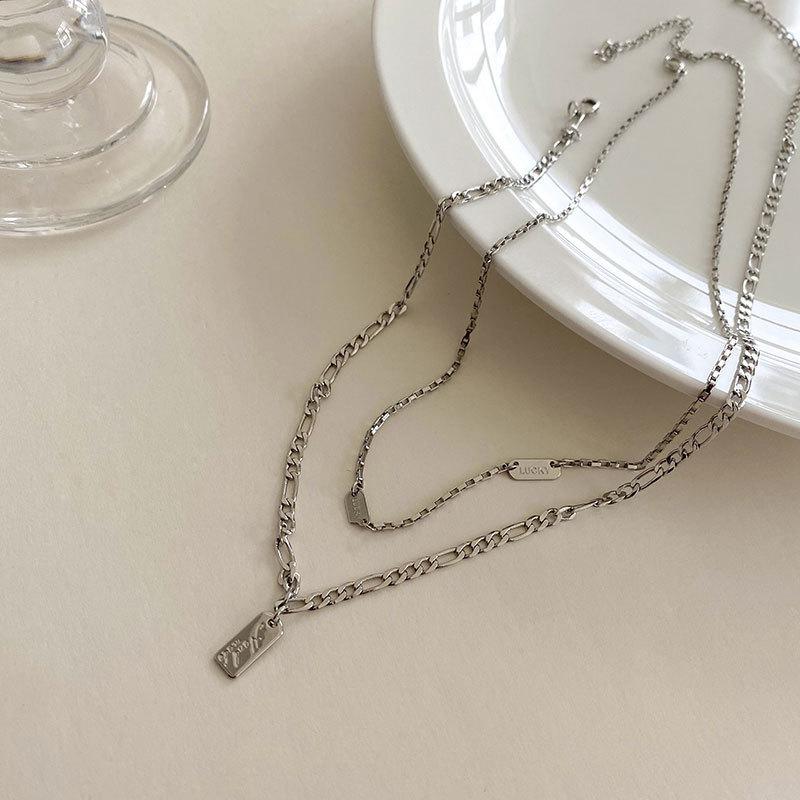 Collar elegante con letras de la suerte de estilo coreano para mujer, estilo retro, elegante y refinado, cadena de clavícula, joyería transfronteriza de moda.