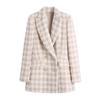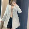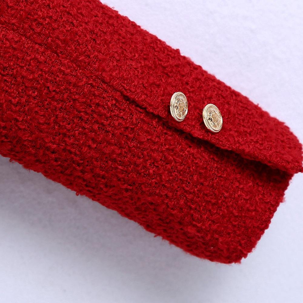 2021 Otoño e Invierno Nuevo Amazon Estilo Europeo y Americano para Mujer Venta al por Mayor Chaqueta de Traje Slim de Doble Botonadura con Cuello Redondo Texturizado