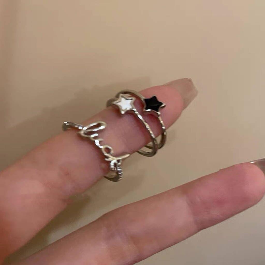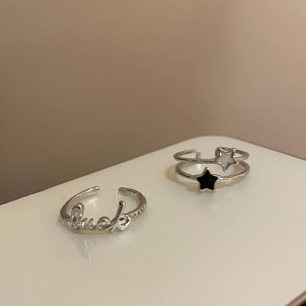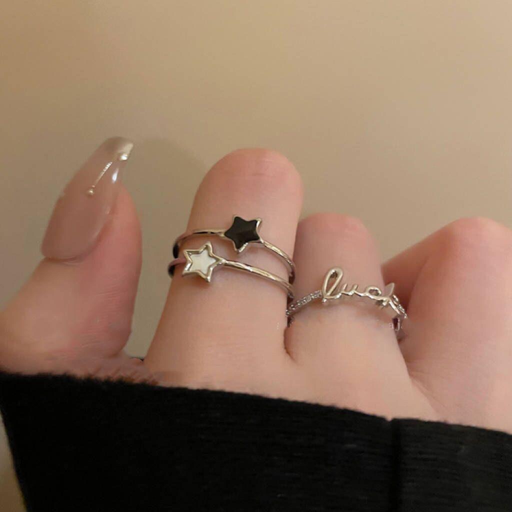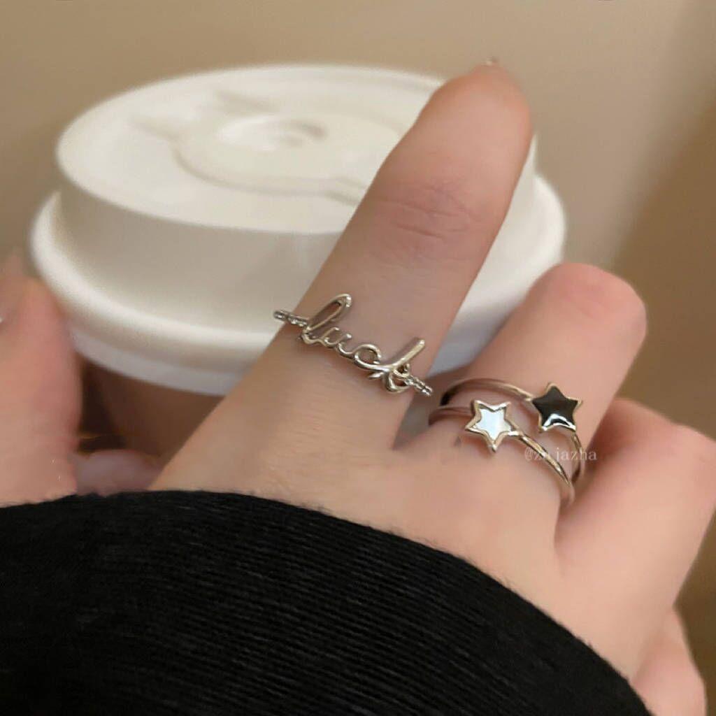 Anillo de circón con letra Lucky Star para mujer, diseño de nicho de estilo frío simple, anillo de dedo índice personalizado de moda