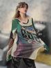 Marca de Moda 2025 Nueva Moda Europea Tops Camiseta con Letras, Bloque de Color, Cuello Redondo, Camiseta Base de Malla, Camiseta de Manga Larga