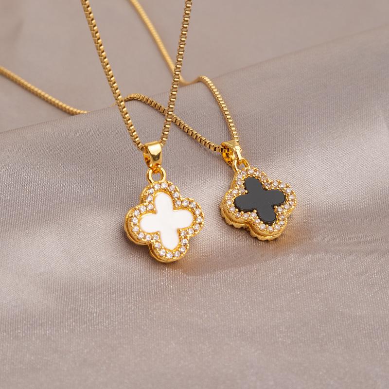 Collar de Oro Clásico de Trébol de Cuatro Hojas de Nicho de Verano 2023 para Mujer, Colgante Versátil Bicolor, Cadena para Clavícula, Moderno y Versátil