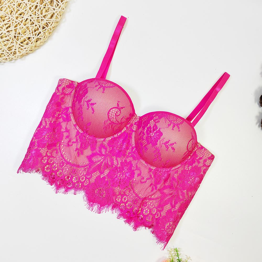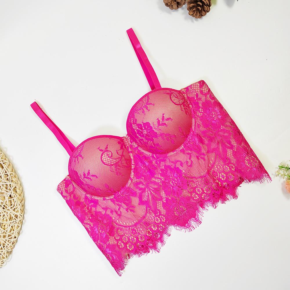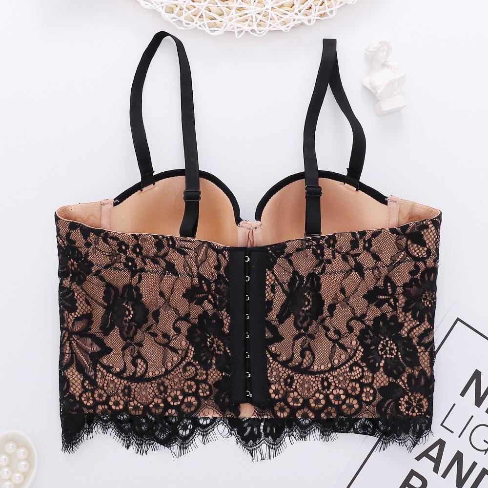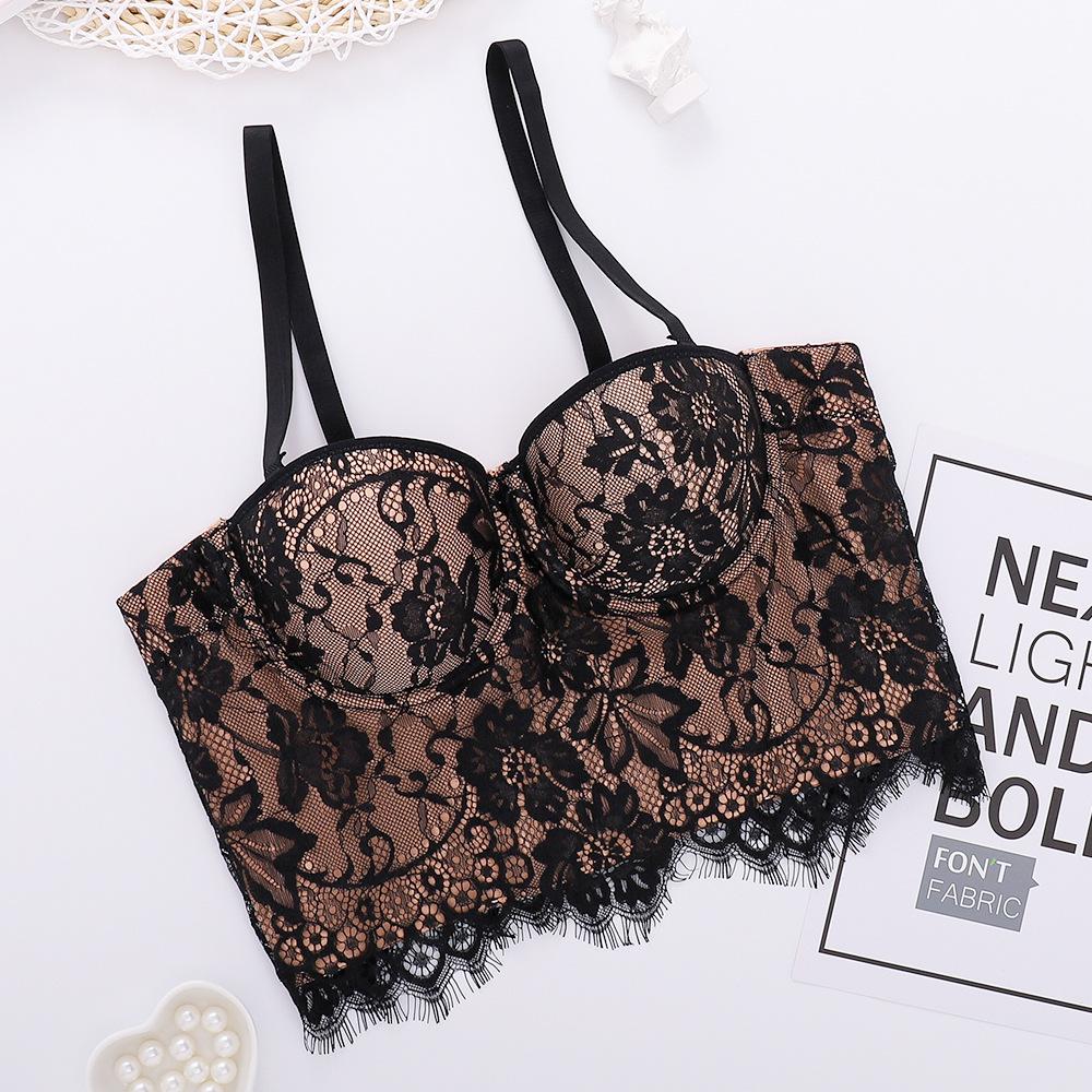 Camisola de Encaje para Mujer Ropa Exterior Corta de Pestañas Corsé con Aros de Acero Ropa Interior Recogida Tendencia de Moda Top Tubo de Color Contrastante