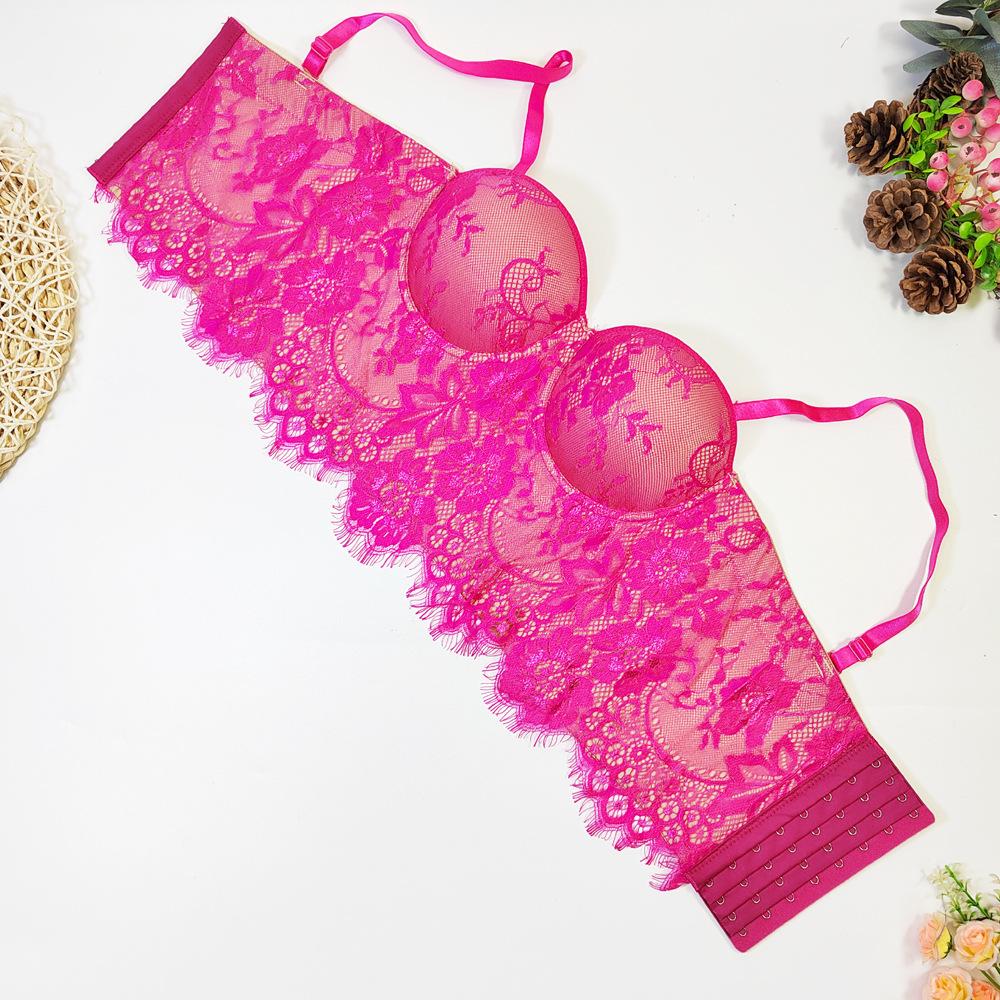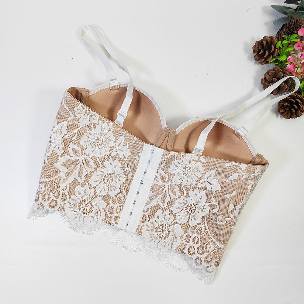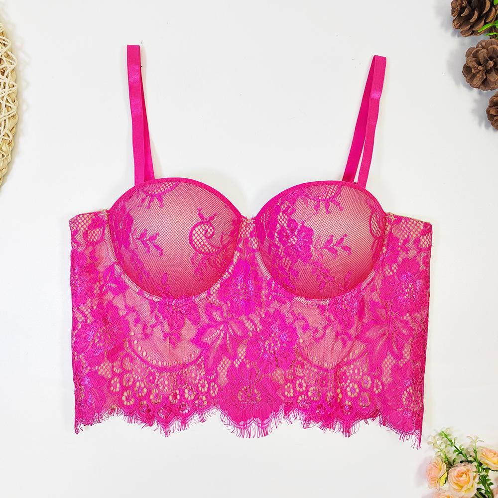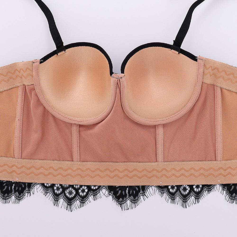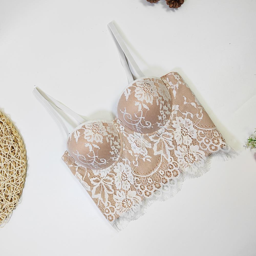 Camisola de Encaje para Mujer Ropa Exterior Corta de Pestañas Corsé con Aros de Acero Ropa Interior Recogida Tendencia de Moda Top Tubo de Color Contrastante