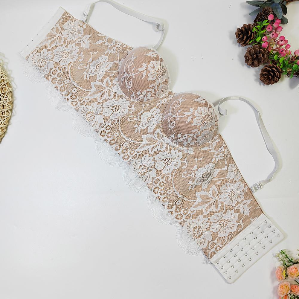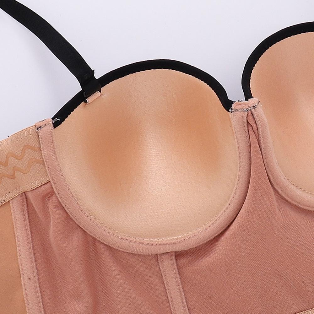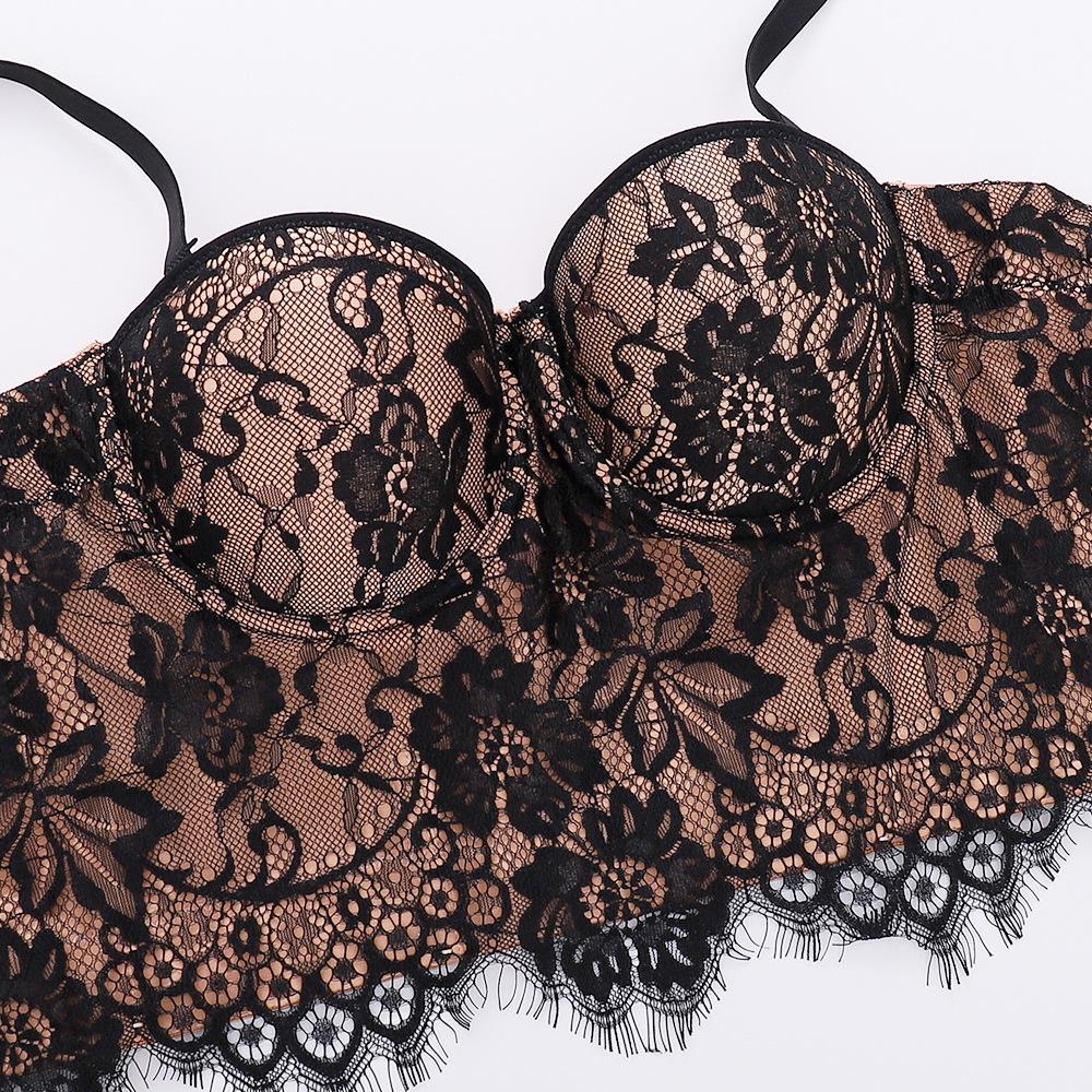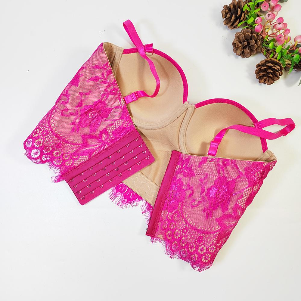 Camisola de Encaje para Mujer Ropa Exterior Corta de Pestañas Corsé con Aros de Acero Ropa Interior Recogida Tendencia de Moda Top Tubo de Color Contrastante
