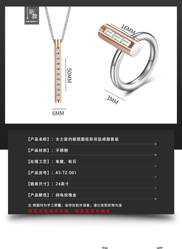 Conjunto de anillo colgante cilíndrico de acero inoxidable, nuevo, de titanio y acero, para damas, de fábrica