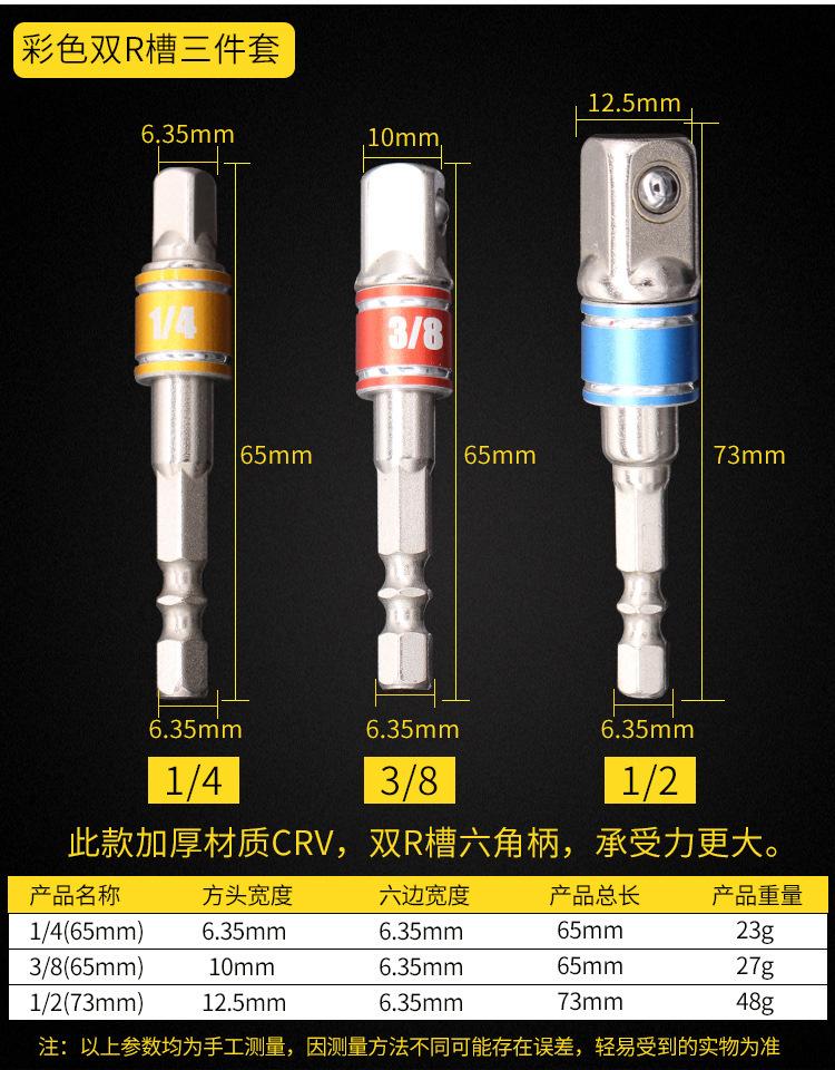 3-Piece Set (1/2 3/8 1/4), Separate 3/8 connecting rod length 50mm, Separate 1/2 connecting rod length 70mm, C...