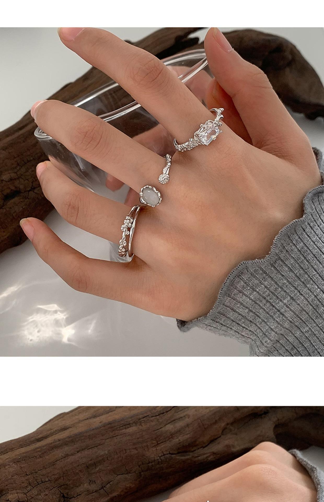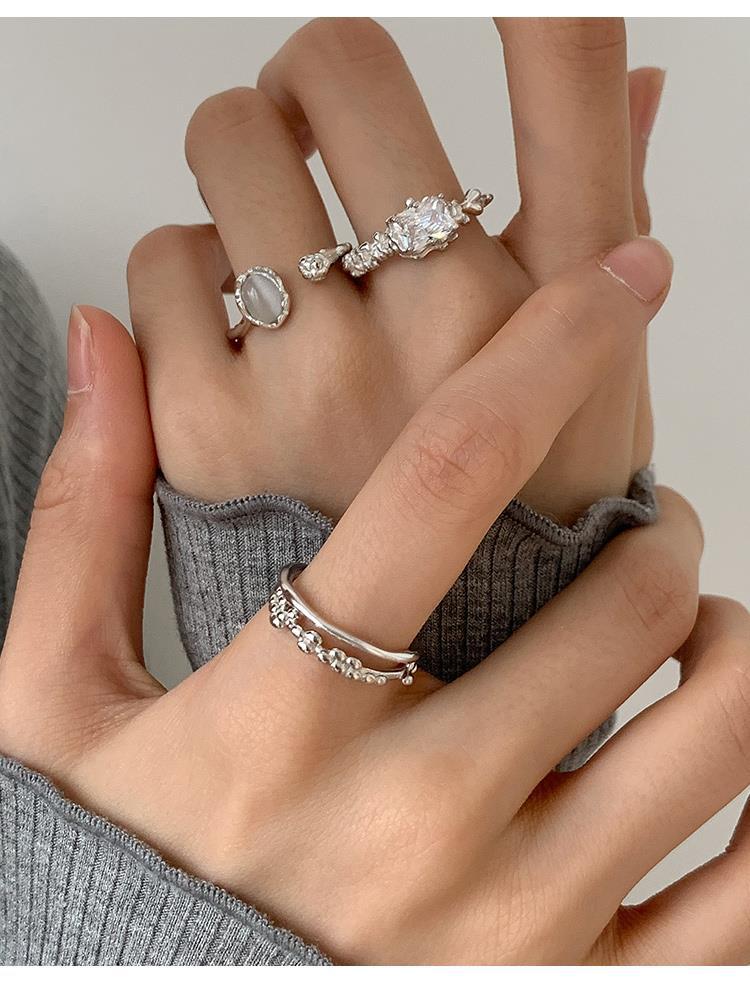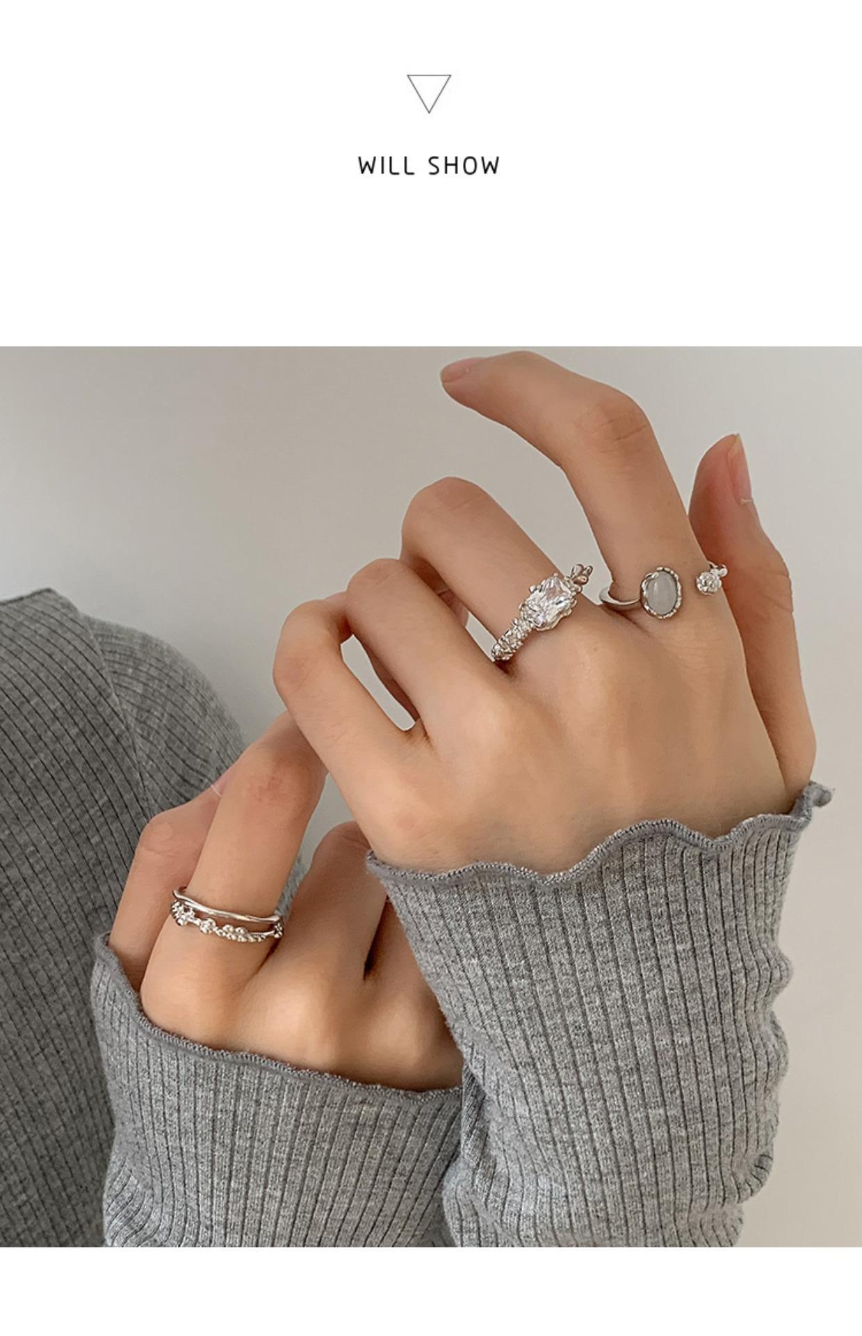 Anillo Ovalado Dulce y Cool con Micropavé de Zirconia para Mujer Estilo Coreano Moda Elegante para Apilar Abertura Irregular Anillo de Dedo Anillo de Dedo para Comida Moda