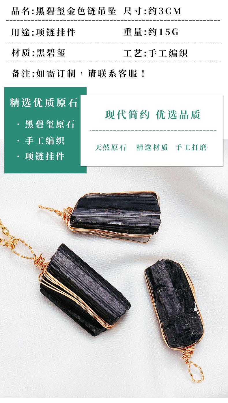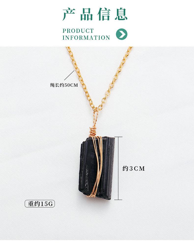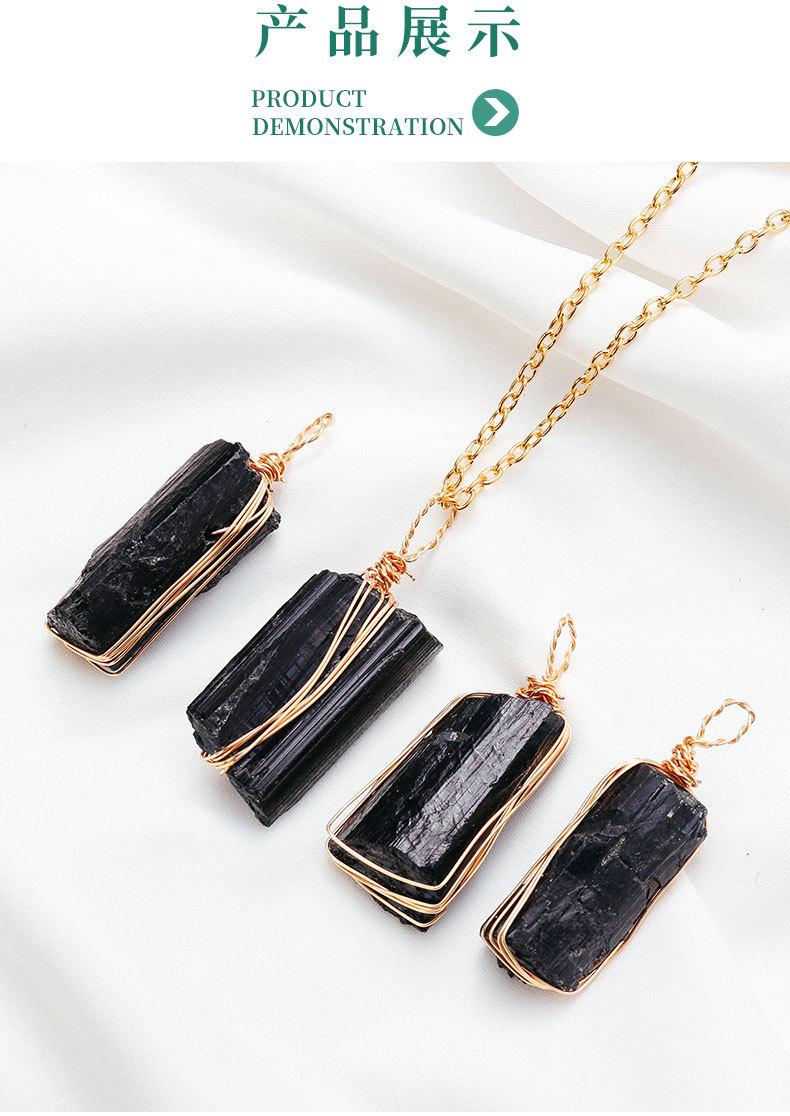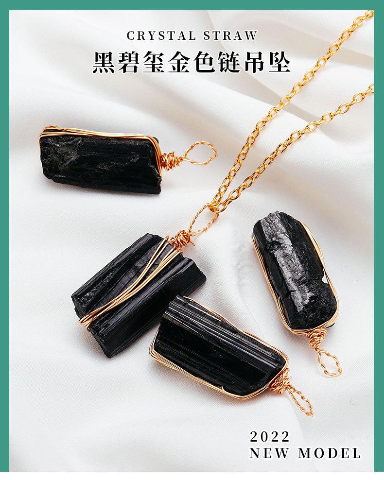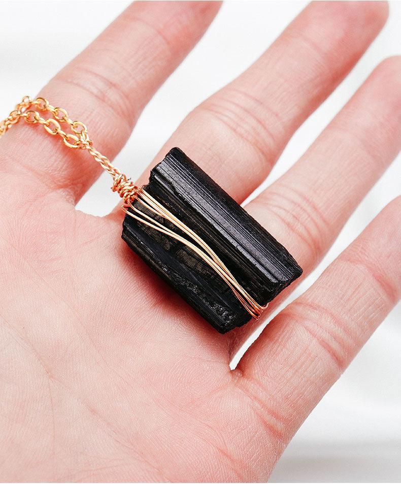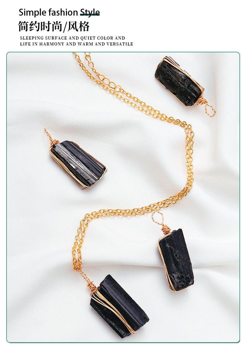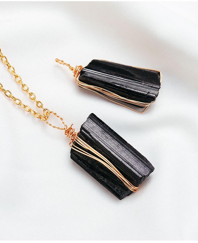 Colgante de cadena dorada con turmalina negra y piedra cruda de cristal natural, tejido a mano, accesorio colgante irregular de turmalina.