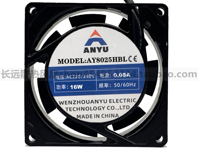 Ventilador de flujo axial pequeño de cobre puro 8025, caja de distribución de CA de 220 V, ventilador de enfriamiento de gabinete, ventilador de escape pequeño 8