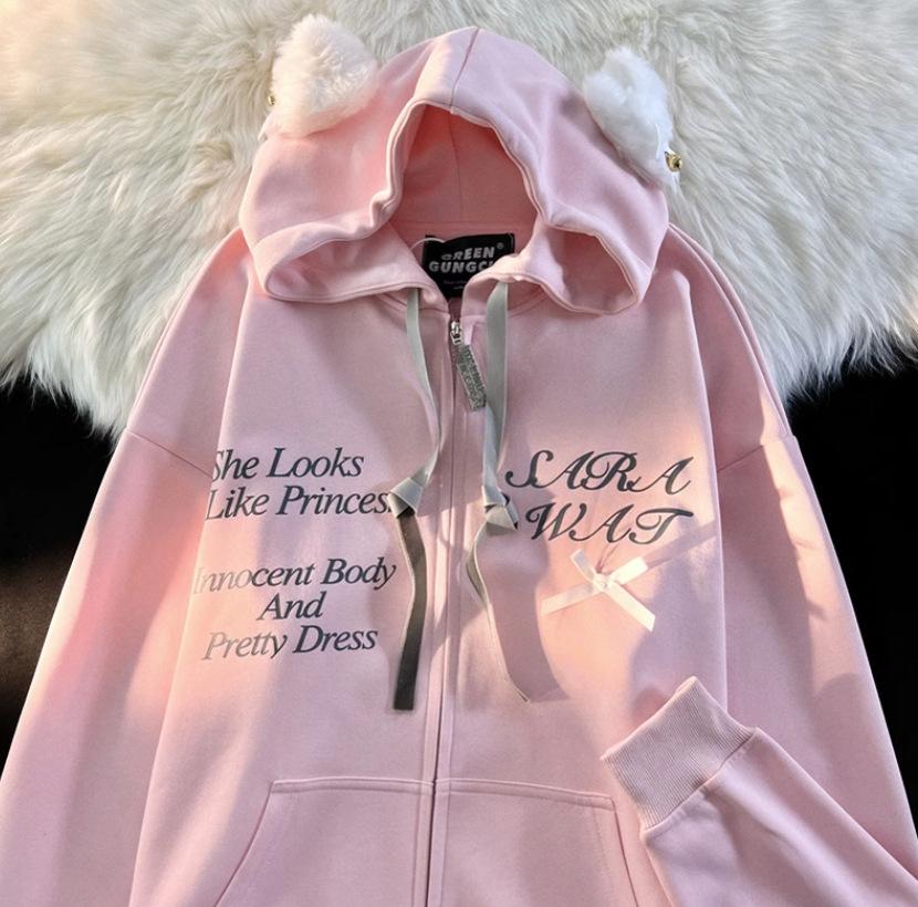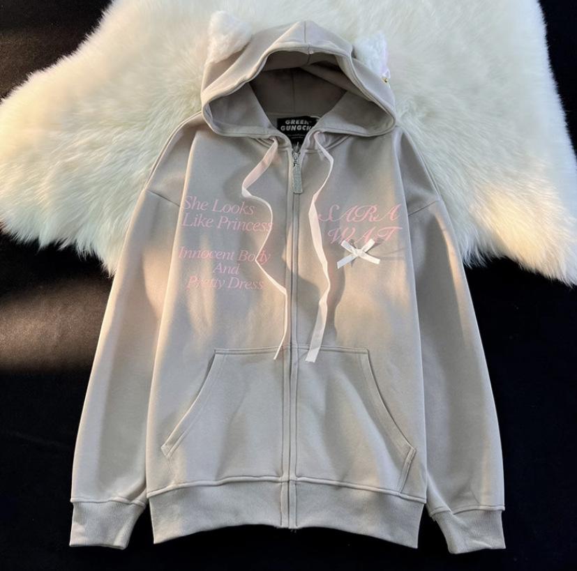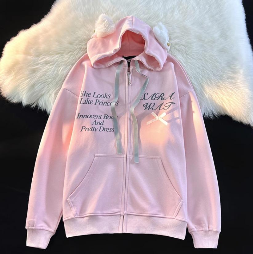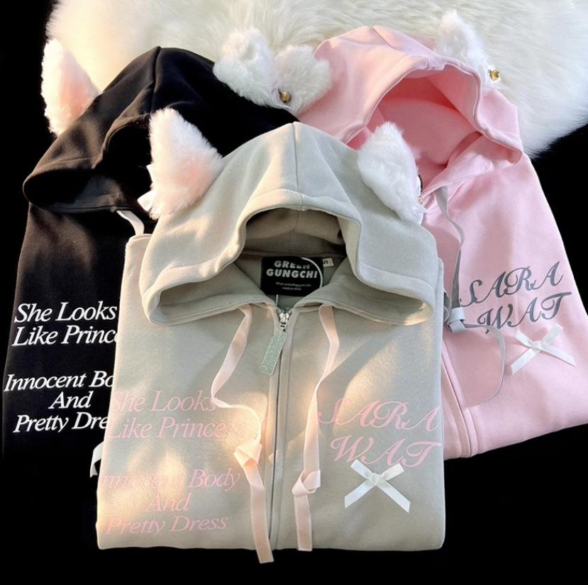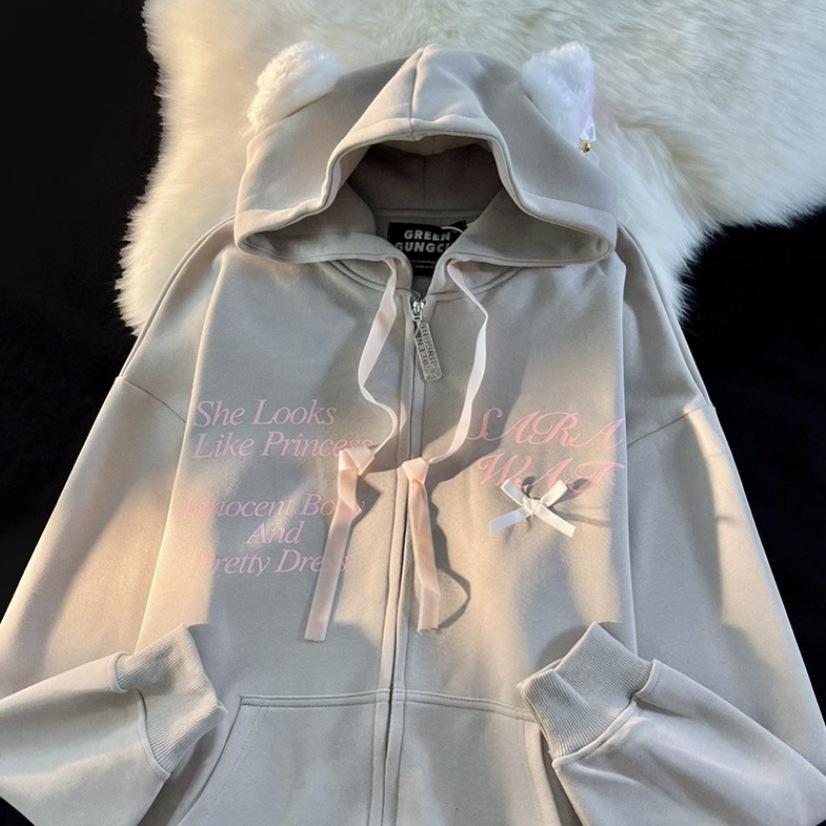 Sudadera con capucha de orejas de gato dulces y geniales americanas para mujer Diseño Nicho Primavera y Otoño 2025 Chaqueta para pareja Lazy Chic
