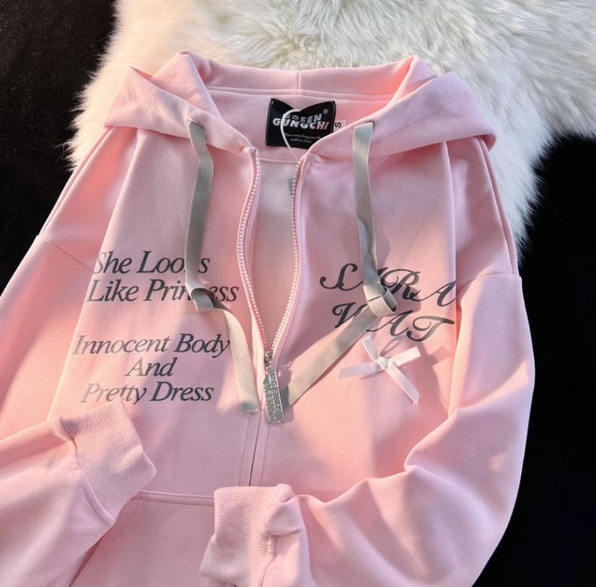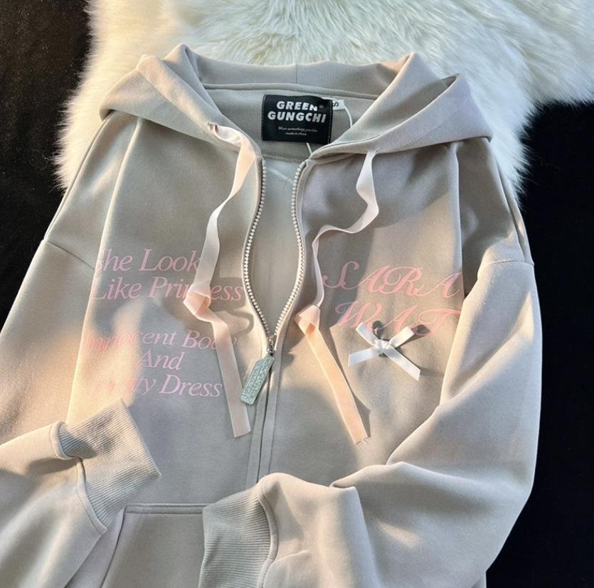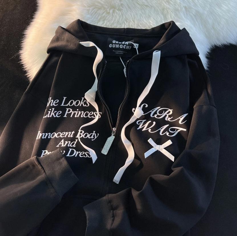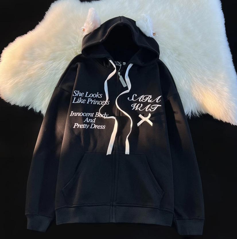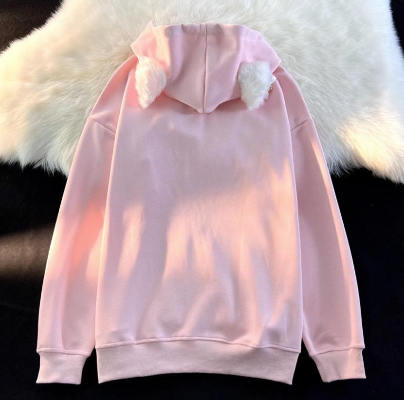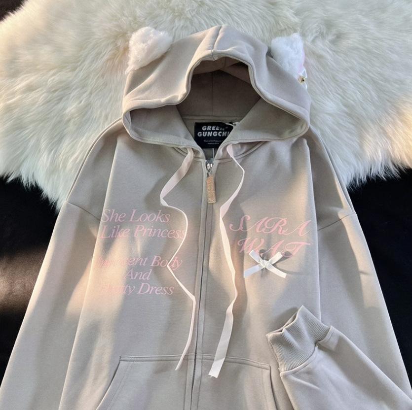 Sudadera con capucha de orejas de gato dulces y geniales americanas para mujer Diseño Nicho Primavera y Otoño 2025 Chaqueta para pareja Lazy Chic